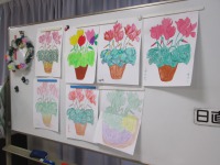こんにちは、デイサービスです。今日は水彩画教室ということで、シクラメンの色塗りを行いました。絵具の他にクレヨンや色鉛筆も用意して、ご利用者様にお好きな道具を選んで取り組んで頂きました。使用する道具によって仕上る雰囲気が異なるのと、ご利用者様それぞれのセンスも重なって、下絵は同じものでも完成したシクラメンは個性があふれる全く違う素敵な作品がたくさん仕上がりました。最後は完成作品をお互いで褒め合って、大満足の時間が過ごせました(*^_^*)