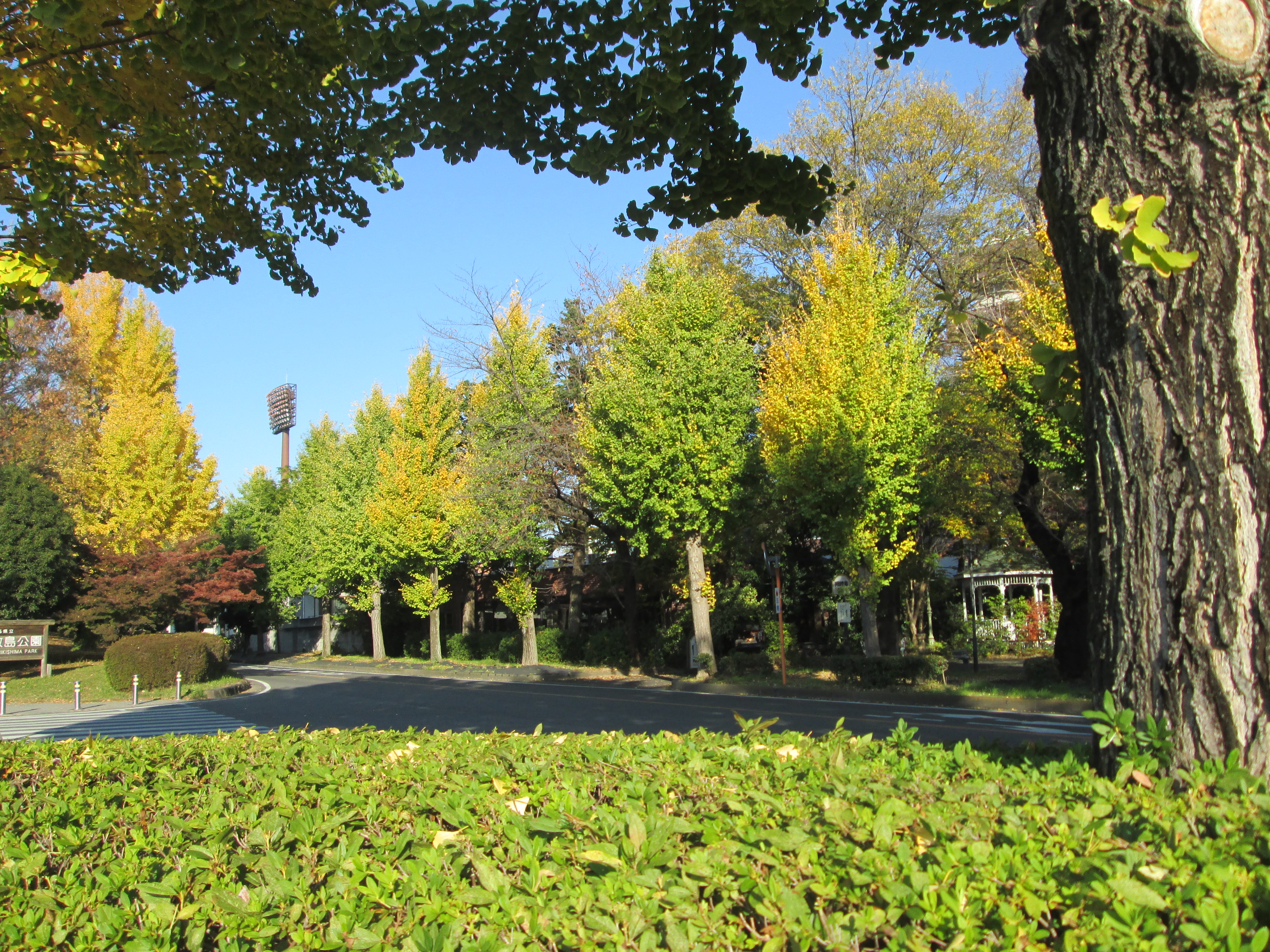 施設南側の道路両脇の街路樹はイチョウが植えられています。