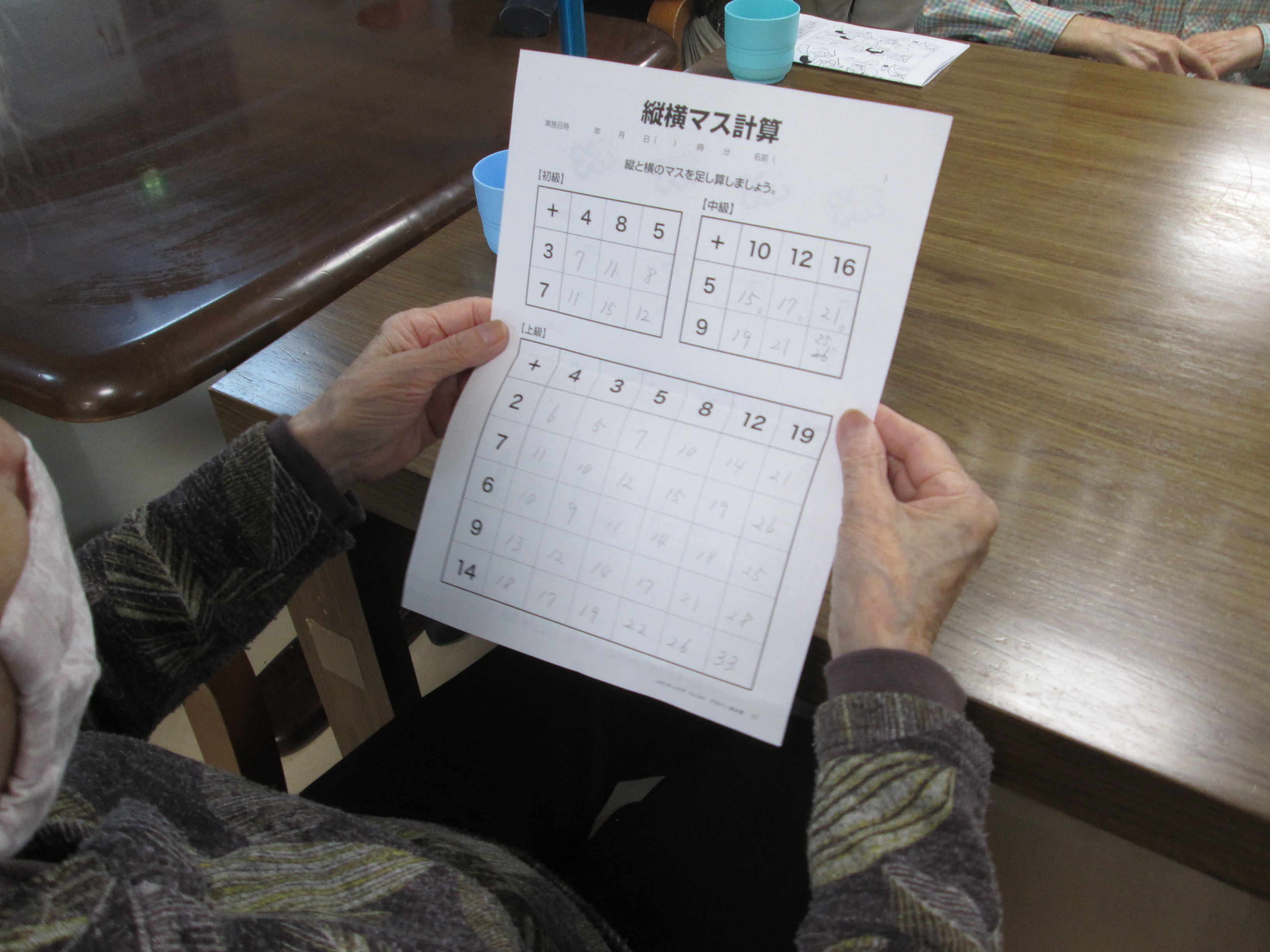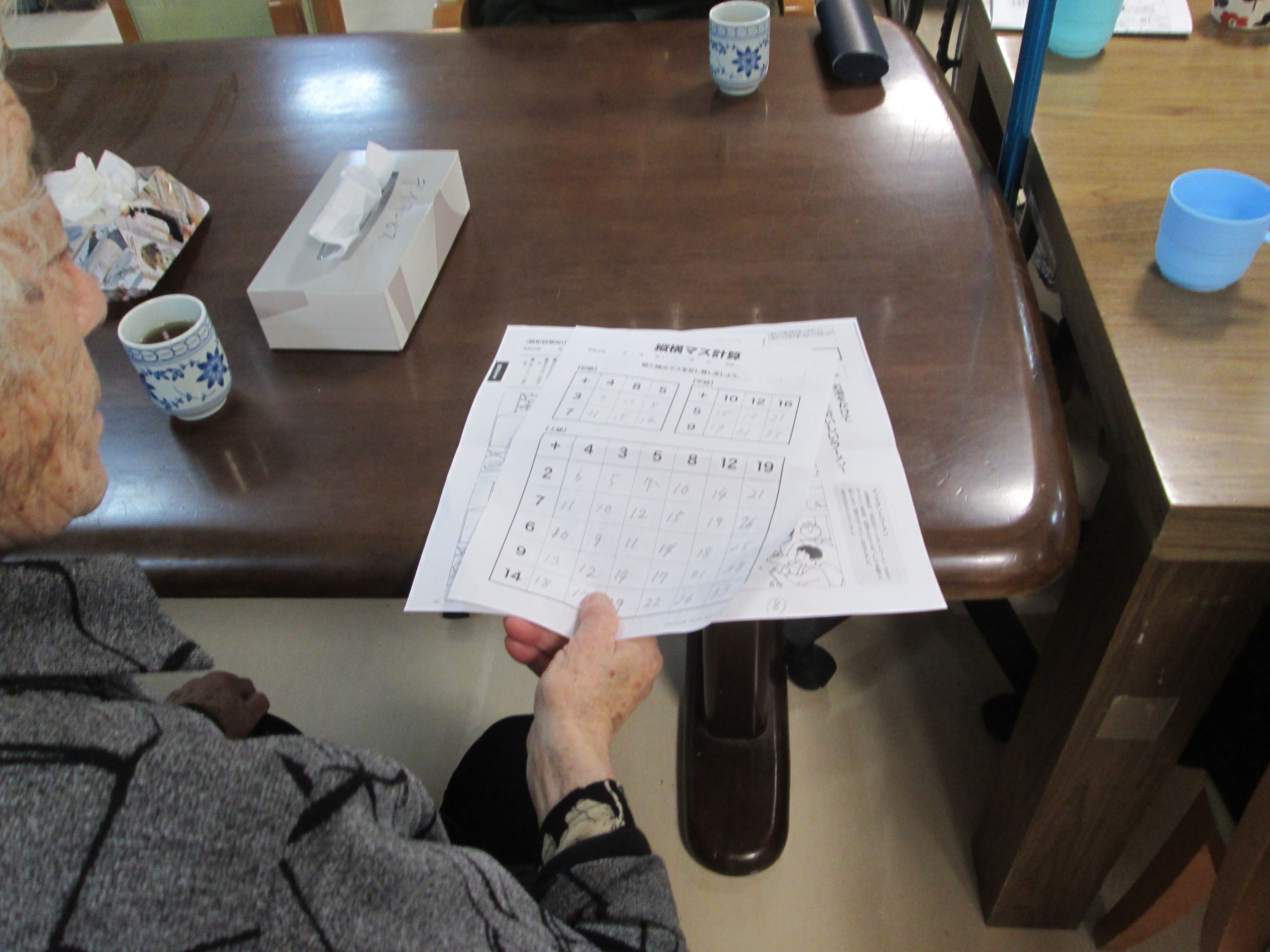 今日のレクリエーションは、リハビリ体操を行いました。手指の体操や下肢の体操や棒体操など…。後半は、脳トレも行い、盛り沢山な内容に皆様とても喜んで下さっていました(*^_^*)