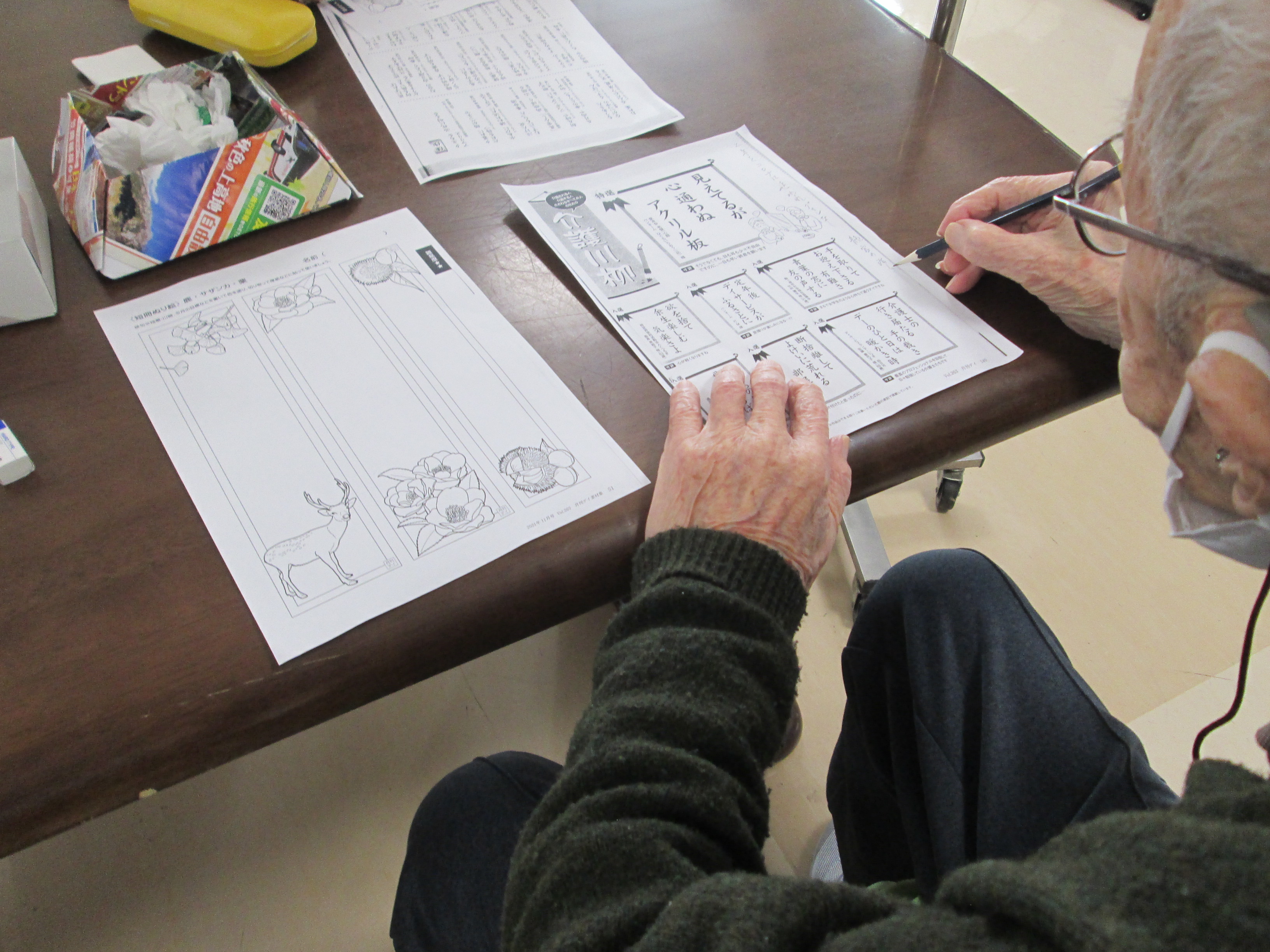今日のレクは介護川柳を作ってみました。