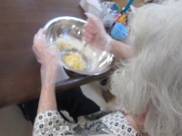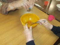 今回の料理教室は『ヨーグルトとバナナのパウンドケーキ』を作りました。消毒・マスク・手袋の徹底をし、感染対策もしっかりと行っています。材料は、ホットケーキミックス・卵・サラダ油・砂糖・バナナ・ヨーグルトです!これらを混ぜ合わせ、オーブンで焼いたら完成です(^^)仕上げに粉砂糖をふりかけてみました。皆様からは「バナナがたくさん入っていて美味しい~」「甘さがちょうどいいね!」と喜んでいただけました。次回の料理教室も皆様に喜んでいただけるような内容を考えていきます。