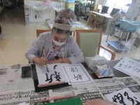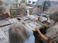 今日のレクリエーションは、書道教室でした。『夏祭』『朝顔』『新涼』などの中からお好きな字を選んで行って頂きました。「この字上手に書けたじゃない」「あら、そう?」など時には褒め合いながら楽しそうに取り組まれていました。
