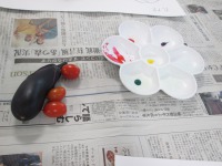 今日のレクリエーションは、水彩画教室でした。今回は夏野菜の絵に色付けをして頂きました。敷島の畑で収穫したナスやミニトマトを実際に見ながら取り組んで頂きました。利用者様同士で「あなたのトマトは真っ赤に完熟していて美味しそうね。」など楽しそうに談笑しながら取り組まれていました。それぞれ美味しそうな夏野菜の絵が完成しました(*^_^*)