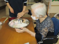 今日の料理教室はチーズケーキを作りました。クリームチーズ、プレーンヨーグルト、砂糖、卵、ホットケーキミックスをサクサク混ぜてオーブンで焼きます。ご利用者様の手際が良いのであっという間です。とても美味しそうに焼きあがったチーズケーキに粉砂糖をまぶして召し上がっていただきました。「なめらかで美味しいね。」「焼き立てなんて初めて食べたから嬉しい。」と大好評でした。
