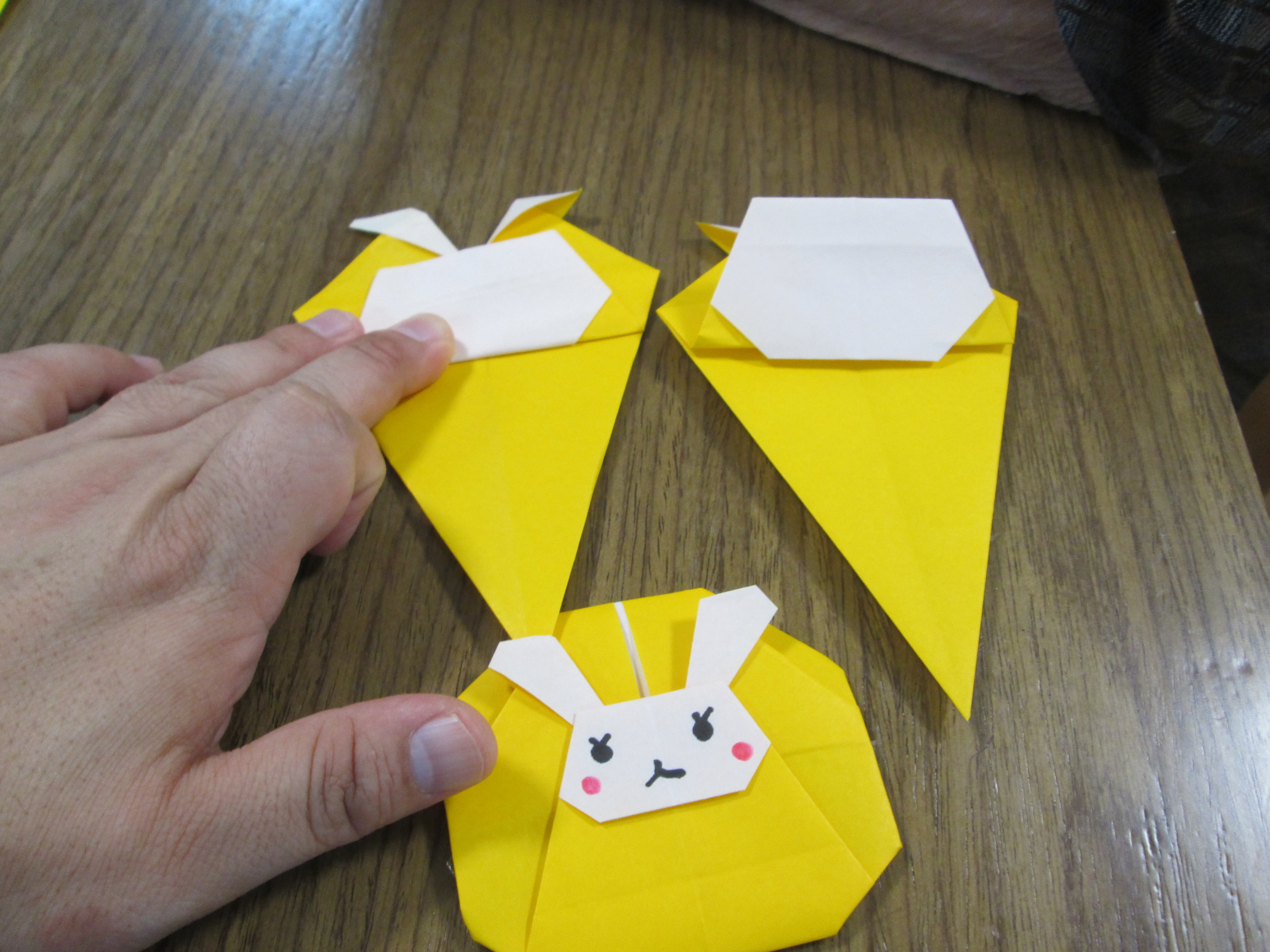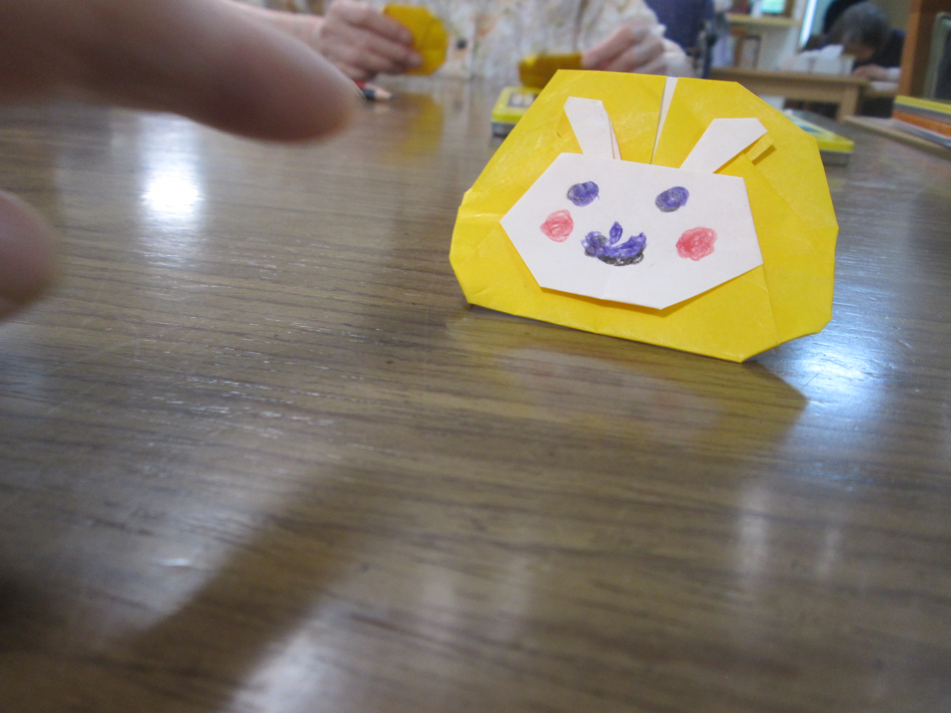 黄色の折り紙で皆さん苦戦されながら上手に仕上げる事が出来ました。