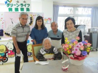 午後からご家族にもお越しいただき、ささやかですが百寿をお祝いさせていただきました。