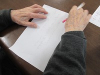 今日のレクリエーションは、介護川柳を皆様に考えていただきました!始める前は「難しいわ、わたしに出来るかな…」と仰っていましたが、始めてみると皆様集中され次々と介護川柳を作られていました。皆様が作って下さった川柳はクスッと笑えるようなものから、なるほど…と考えさせられるものまで様々なものがありました。次回もどんな介護川柳が出来あがるのか楽しみです。
