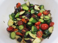 畑できゅうりとミニトマトとなすがとれたので、ご利用者様と何を作ろうか相談した結果、