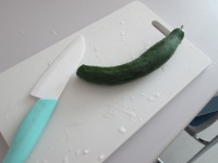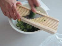 食べ方をいろいろ考えた結果、同じく畑に実っている青じその葉も使って塩もみにすることにしました。