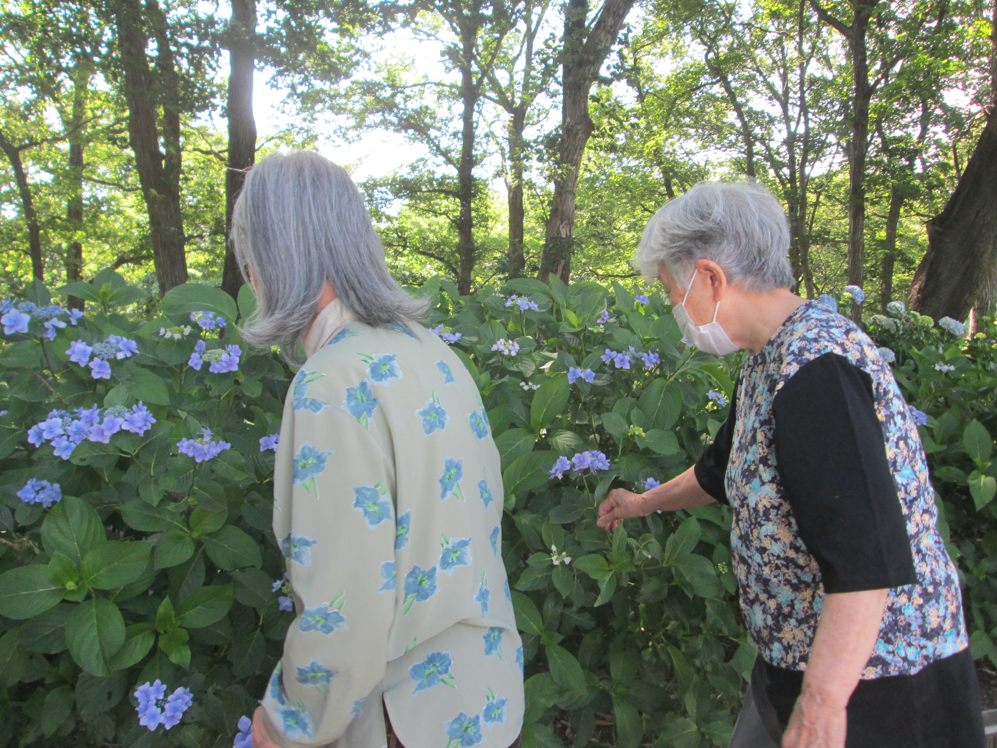 初日はお天気に恵まれ、色とりどりの紫陽花を見ながら、「良い色に咲いてるね」