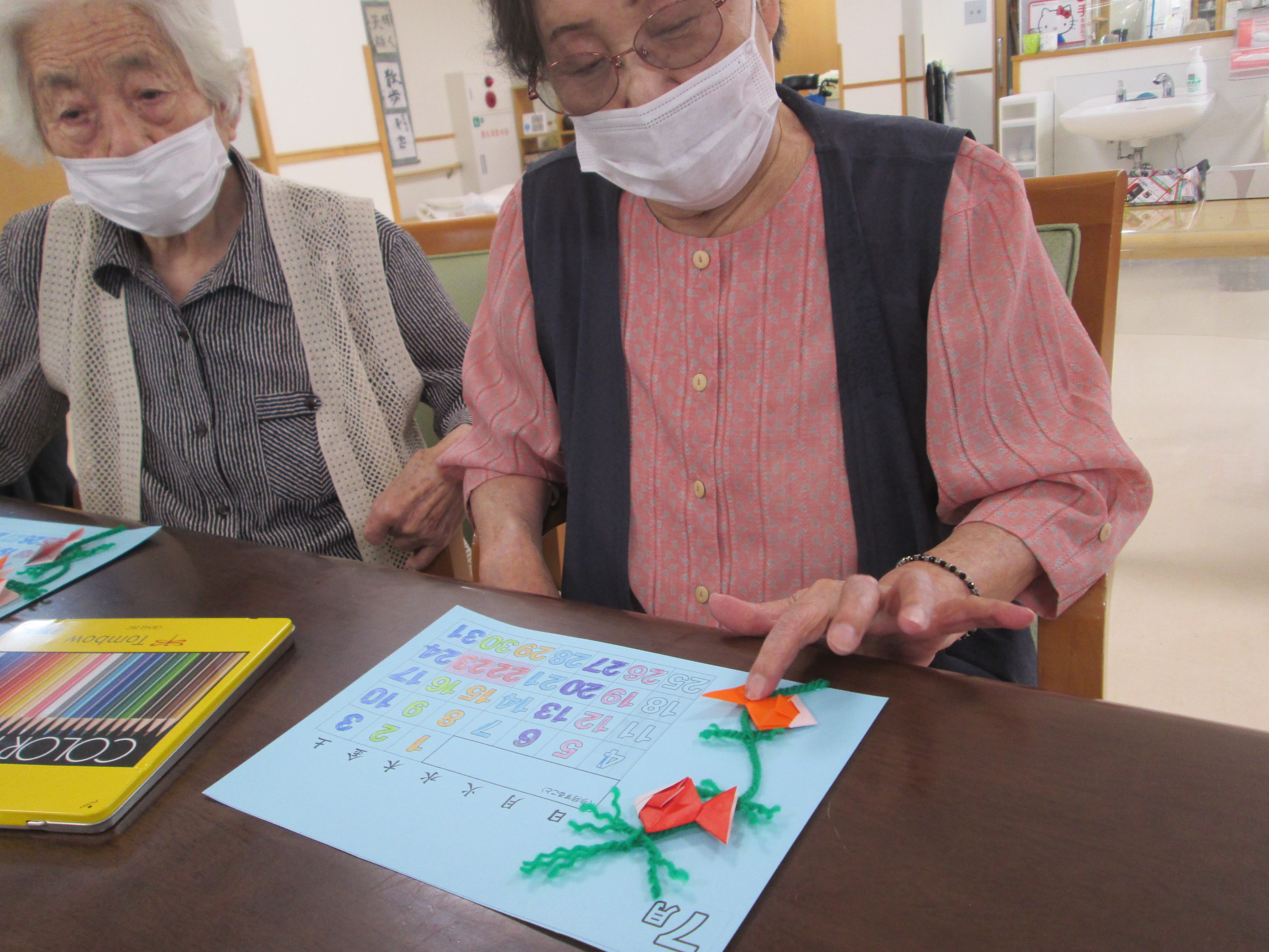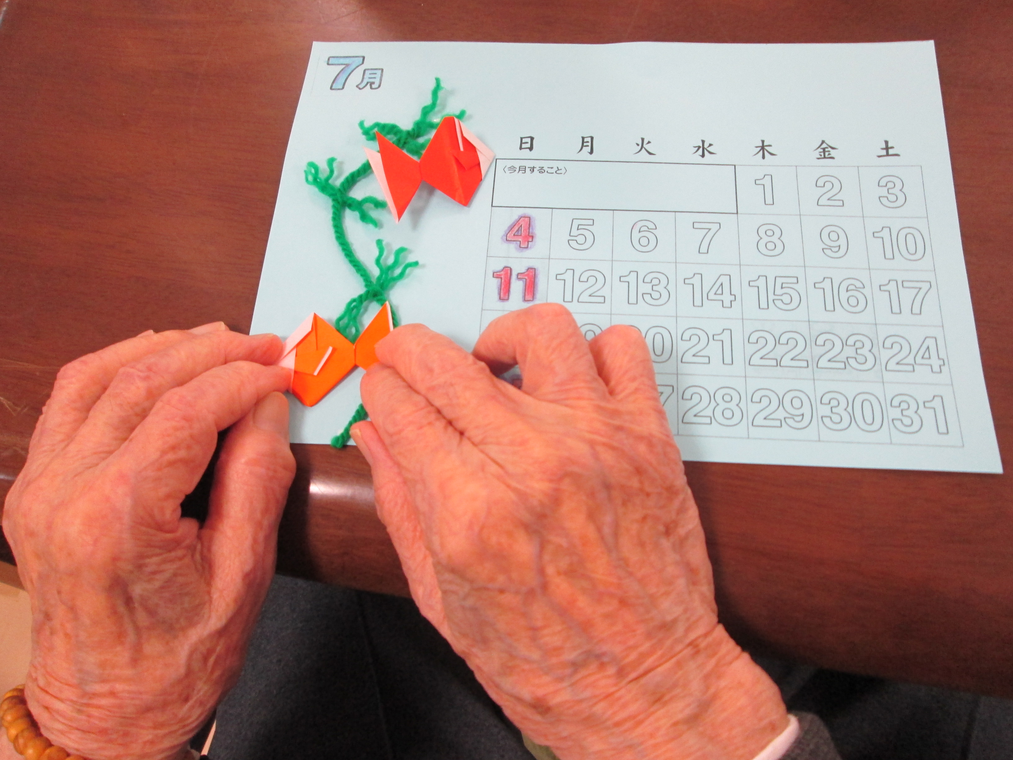 思いますが、今回デイサービスでは、金魚を折り紙で折り