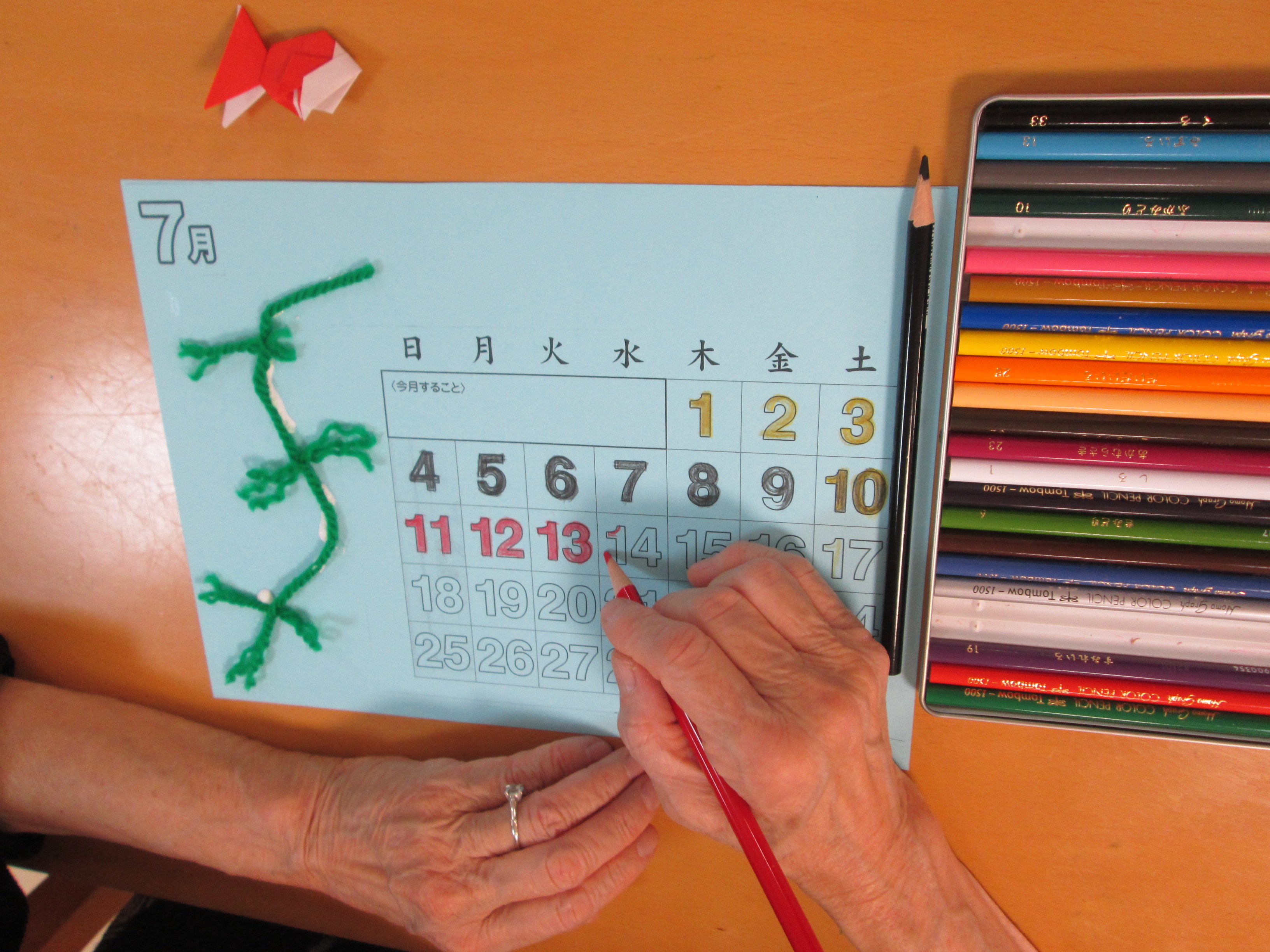 完成したカレンダーは、優雅に水の中を泳ぐ金魚が表現でき「いいのが出来たね」と言われ