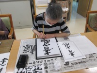 今日は、皆様に好評の書道教室を行いました。今回は『梅雨』『青嵐』『水無月』などの見本を用意しました。皆様、とても上手でお隣さん同士で見せ合いながら「習字やっていたんですか?とっても上手!」「そんなことないわよ~あなたのほうが上手じゃない」と、楽しく会話しながら取り組まれていました。