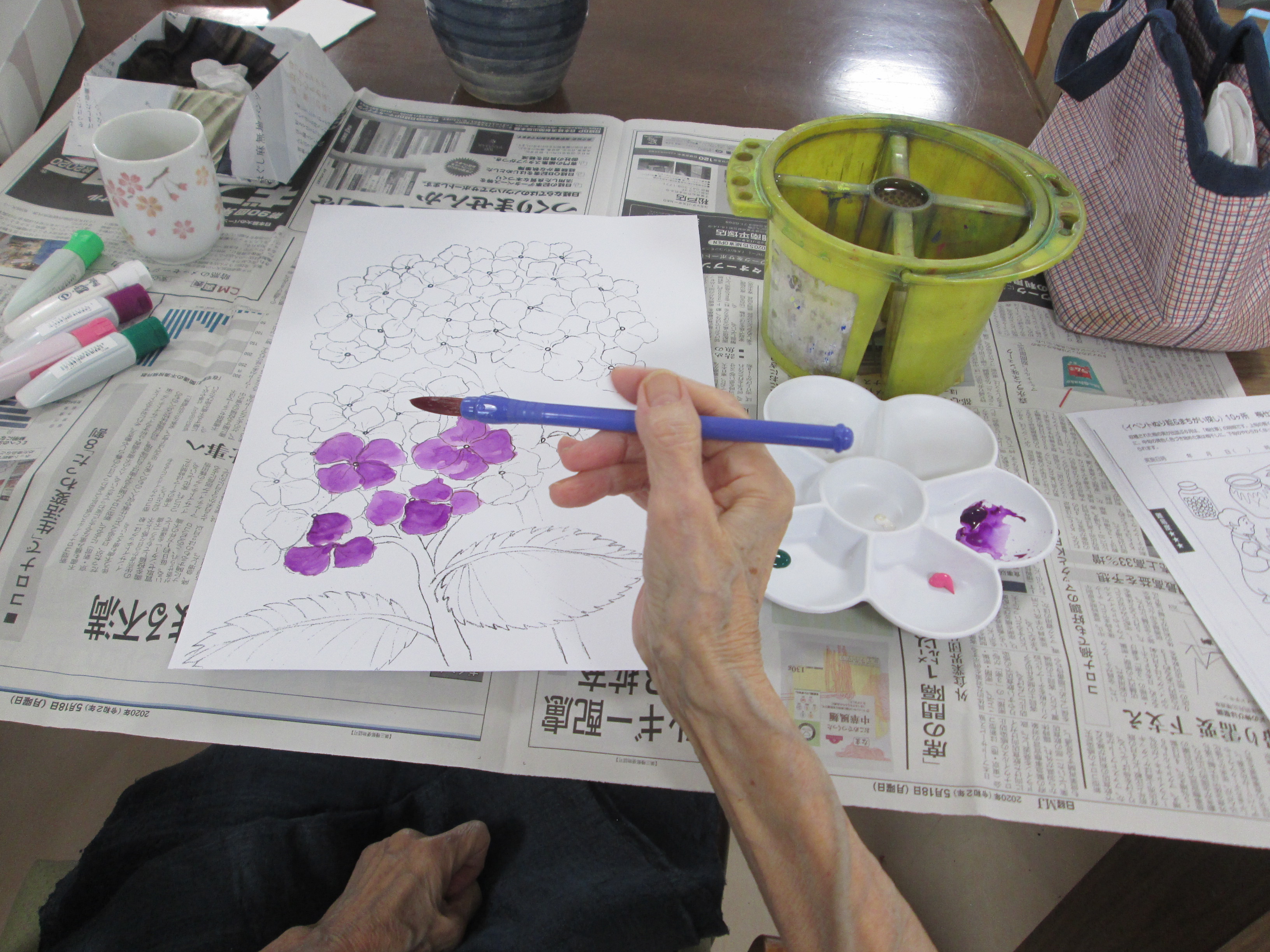 今日は、水彩画教室を行いました。6月に咲く花と言えば・・・アジサイ。