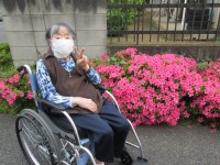 駐車場のツツジがとてもきれいに咲いていたので、お昼休みにご利用者様と写真を撮りました。