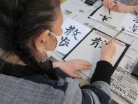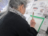本日は書道教室を行いました。『相撲』『青雲』『輝く笑顔』『散歩』などのお手本を用意し、好きな字を選んで書いていただきました。とても上手な方ばかりで、職員が思わず見入ってしまいました。いつもは賑やかなデイルームが静かになるほど、皆様集中して取り組まれていました。