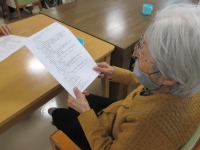 今日は音楽レクということでマスク着用して頂き、唱歌や童謡を皆で歌いました♪歌をうたう事には楽しいだけじゃなく、唾液の分泌を促し誤嚥を防ぐという効果や口内環境を良くするという効果もあります。『七つの子』『月の砂漠』など、全26曲余り(時間の都合上フルではありません)を歌いました!皆で声を合わせ和やかな雰囲気で歌うことが出来ました。