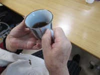 こんにちは、デイサービスです。本日はリラクゼーションということで、プーアール茶の試飲をして、お茶の香りと味を嗜んでリラックスしていただきました。まずはじめに、お茶の種類や効能について勉強をしました。プーアール茶には血糖値を下げる、胃の機能を高めて食の滞りを解消する、コレステロールの調整等たくさんの効能があるそうです。実際に試飲していただくと、「思っていたより飲みやすいんだね」と大好評でした。