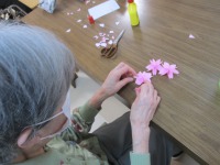 こんにちは、デイサービスです。折り紙で桜の花びら作りを行いました。皆さん、黙々と作業に取り組んで下さり、あっという間に時間になってしまったので来週も続きを行います。この桜の花びらをつなげてリースにする予定です。完成が楽しみです。