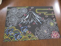 今日は、スクラッチアートというものを行いました。黒地の紙に白で絵が描かれており、その線をなぞったり全体を塗りつぶしたりすると綺麗な色が出てくるものです。皆様からは「こんなの初めて見た~」「綺麗ねぇ~」と大好評でした!
