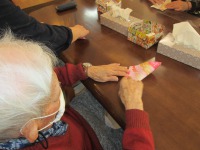 こんにちはデイサービスです。本日のレクリエーションは昨日に引き続き、つるしびな作りでした。とはいっても本日ご利用の利用者様は初めてのつるしびな作りです。折り方によっておひな様やおだいり様の顔の形や髪型が変わってくるので、仕上がったものは利用者様によって個性がでます。「私のは面長になっちゃった。」「私のは顔がぺちゃんこ。」等楽しい会話も聞こえてきます。次回は松、金魚、椿、鳥を作って紐で繋げば完成になります。