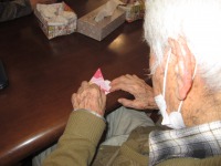 こんにちは、デイサービスです。本日はつるしびな作りを行いました。まずは、折り紙でおだいりさまとおひなさまを折ってもらいました。皆さん、難しいねと言いながらも丁寧に行って下さっています。ここで時間となってしまったので続きは次回になります。完成が楽しみです。