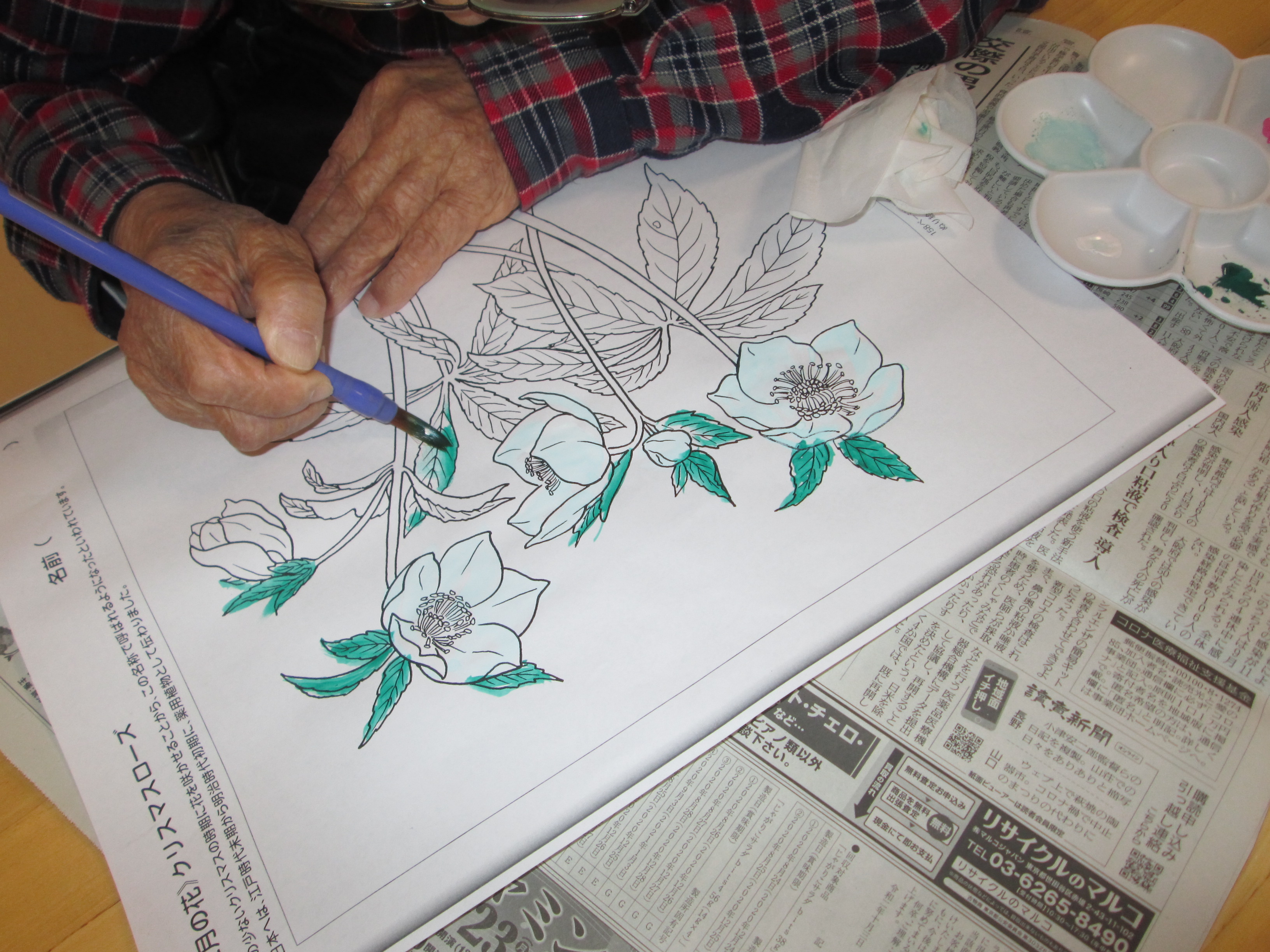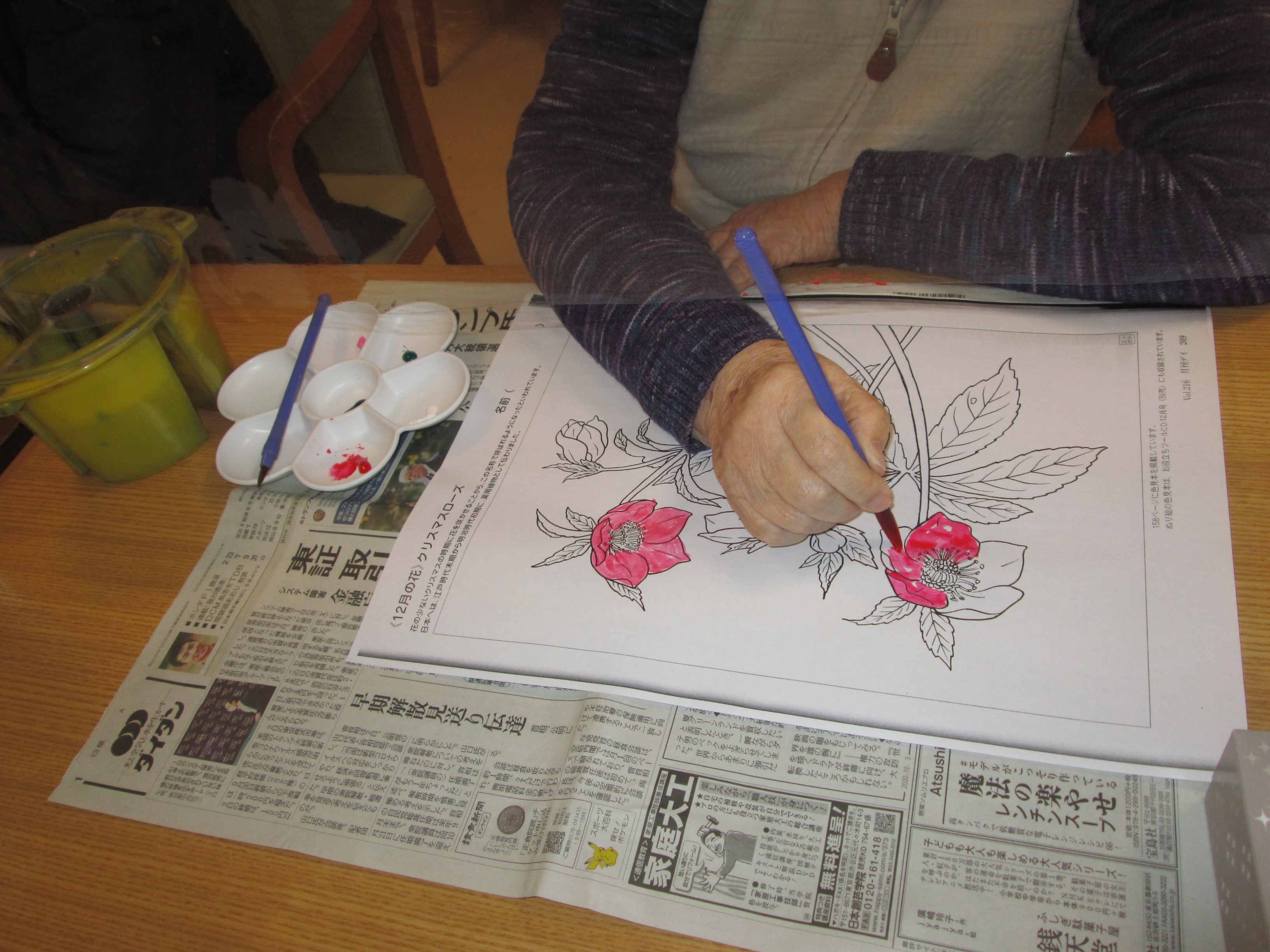 クリスマスローズの花の色付けでした。