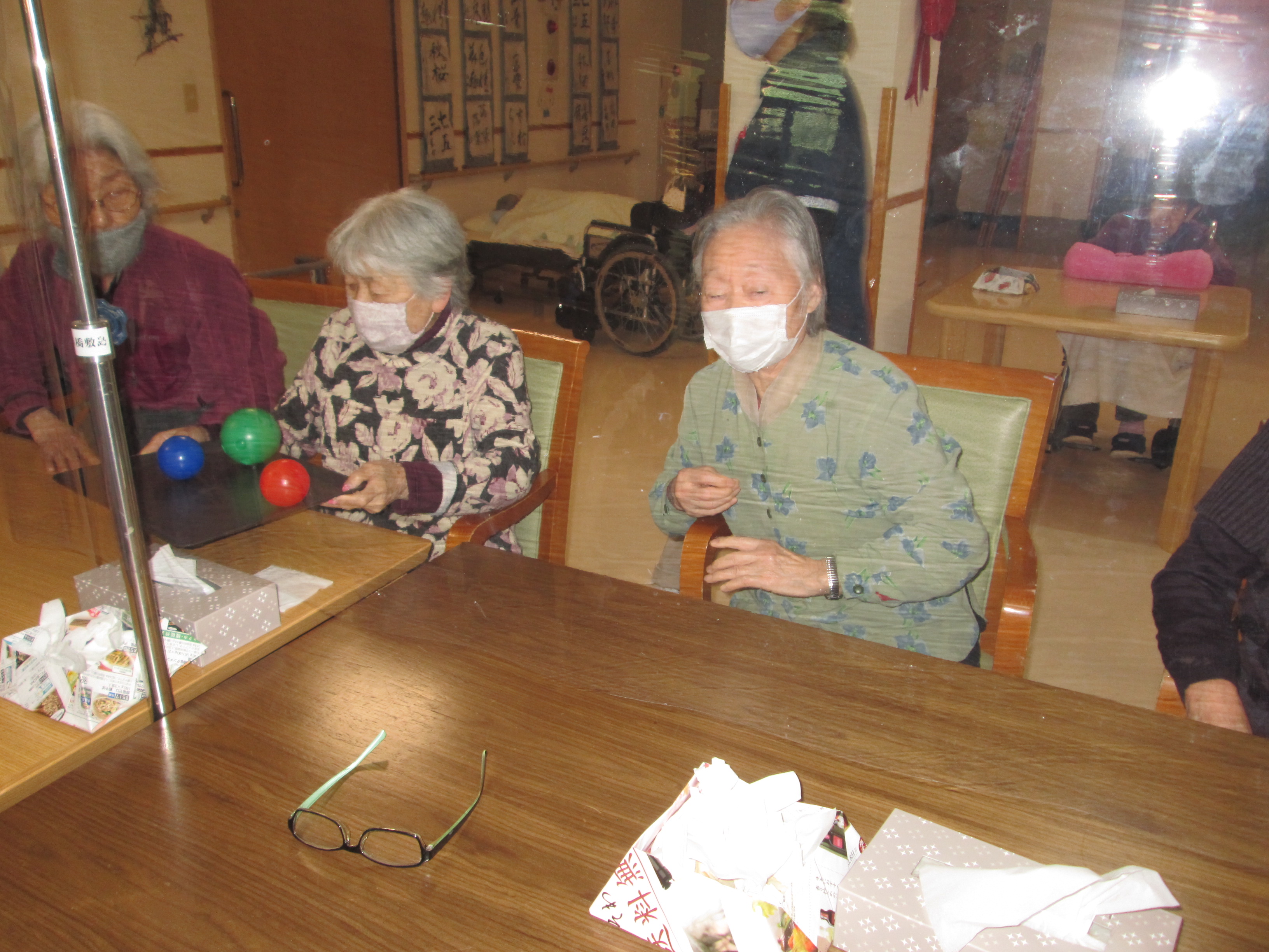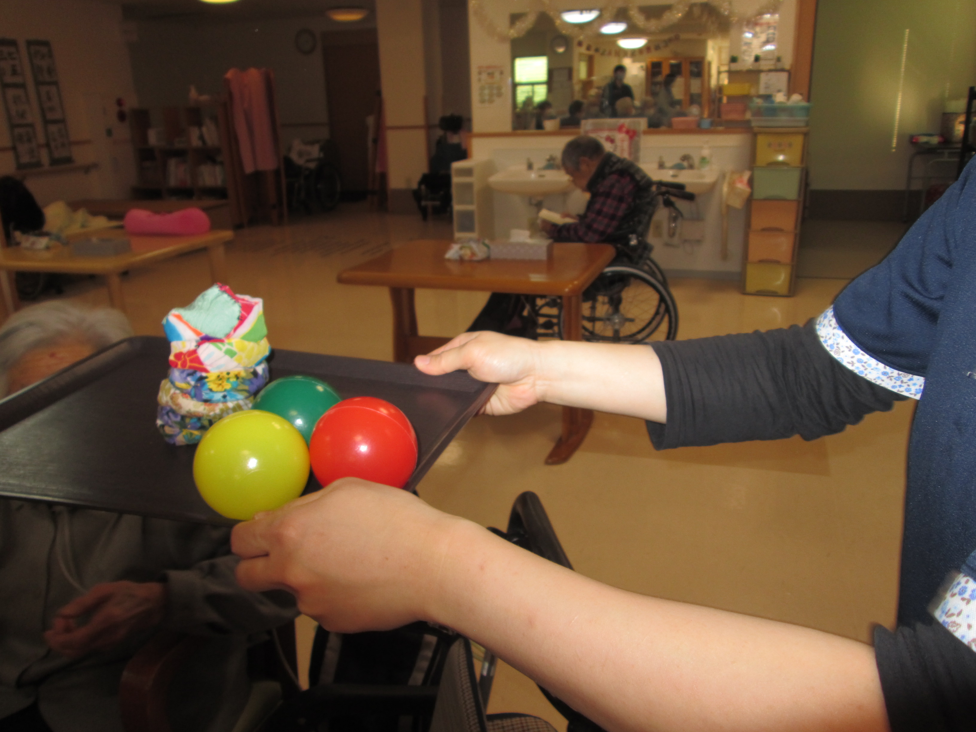 今日のレクリエーションは的当てゲームを行いました。皆様、集中して点数の高い的を狙い奮闘されていました!デイルームに明るい声が響き渡り、楽しい時間を過ごすことが出来ました。