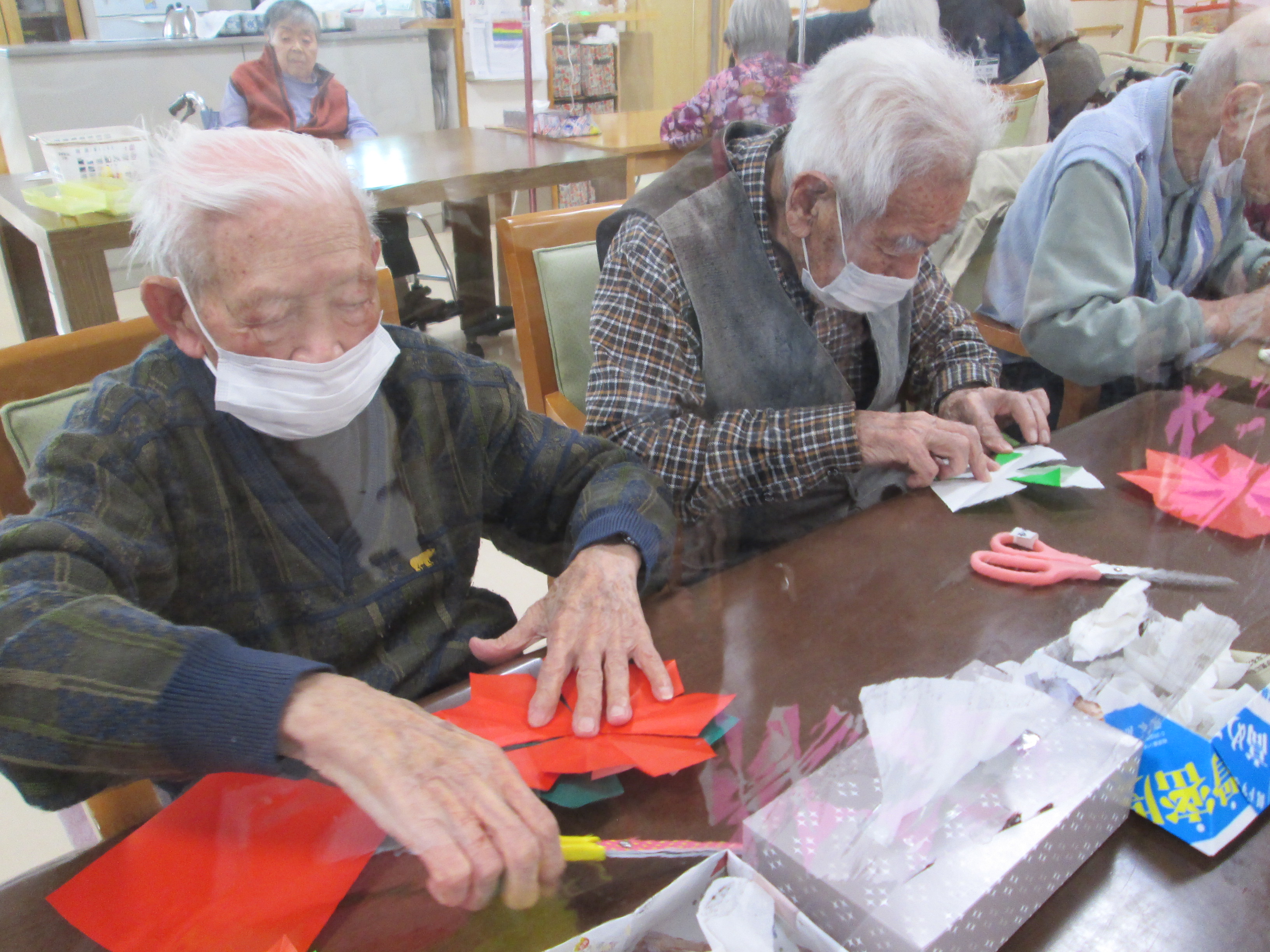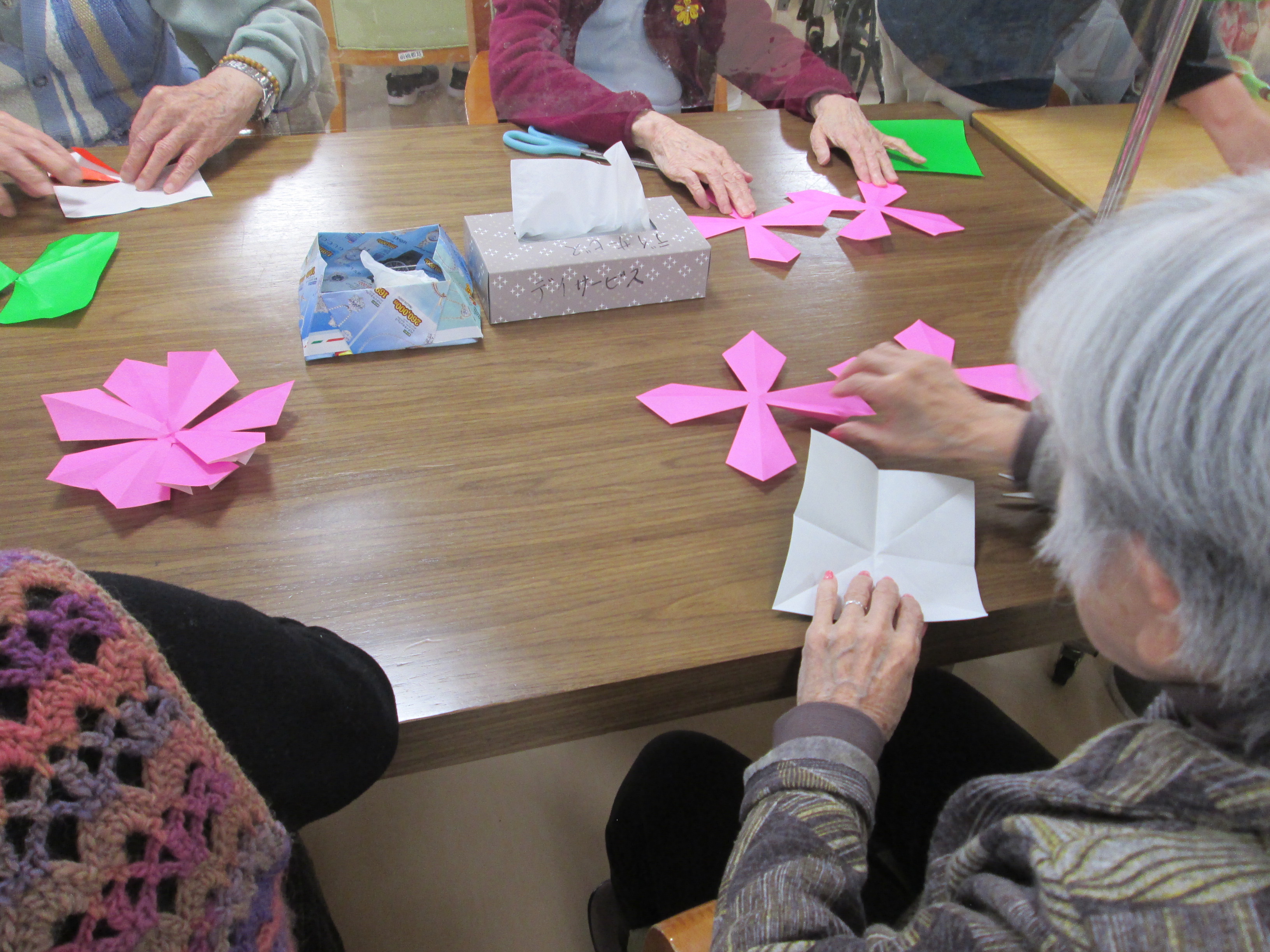 今日は、折り紙を使ってポインセチアの花を作りました。