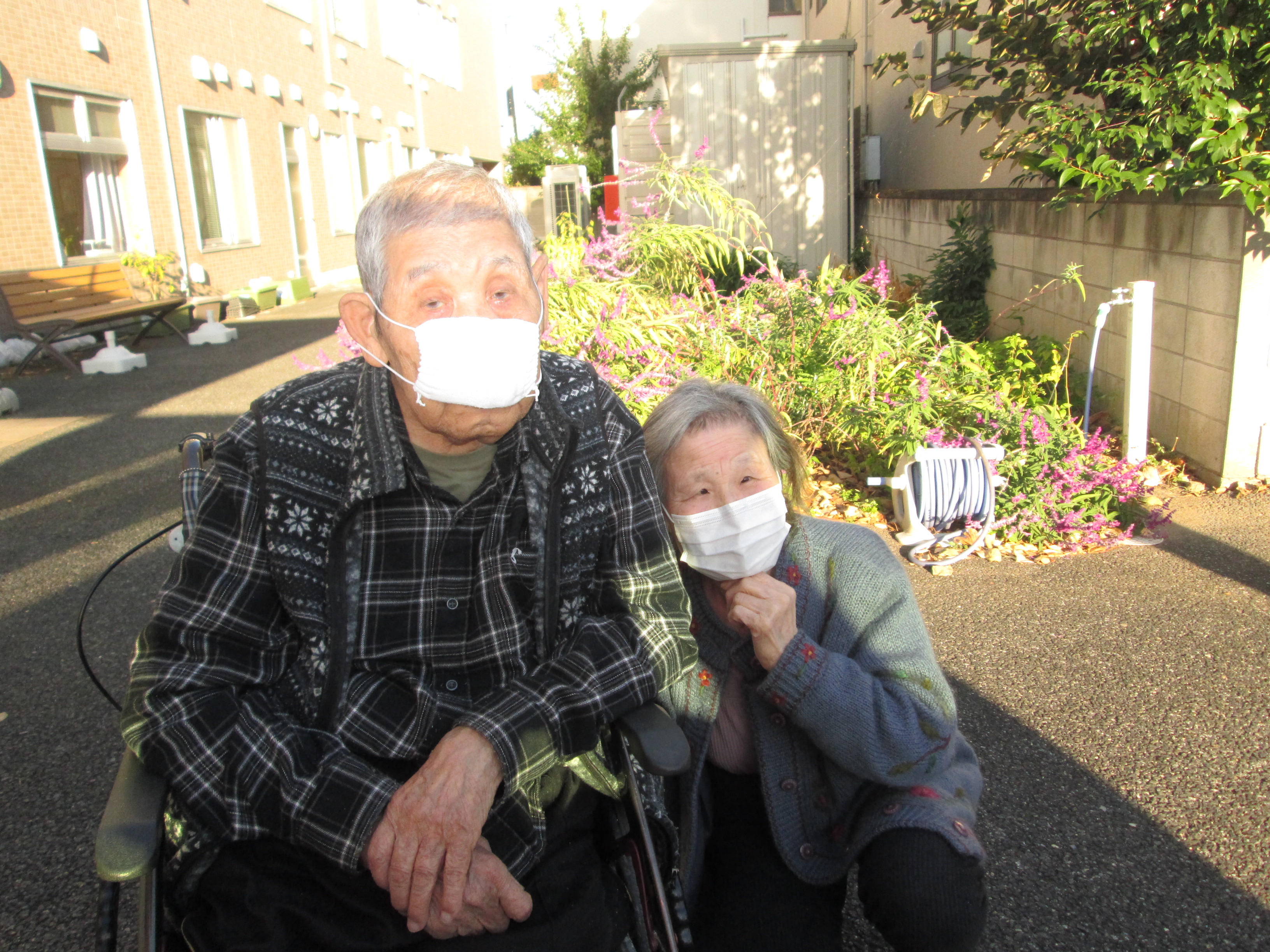 デイサービスでは、お昼休みやおやつの時間に、外に出て気分転換をしています。