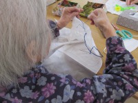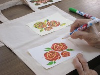 編み物をしたり、つまみ細工でアクセサリーを作ったり、無地のバッグにステンシルを施したりと・・・