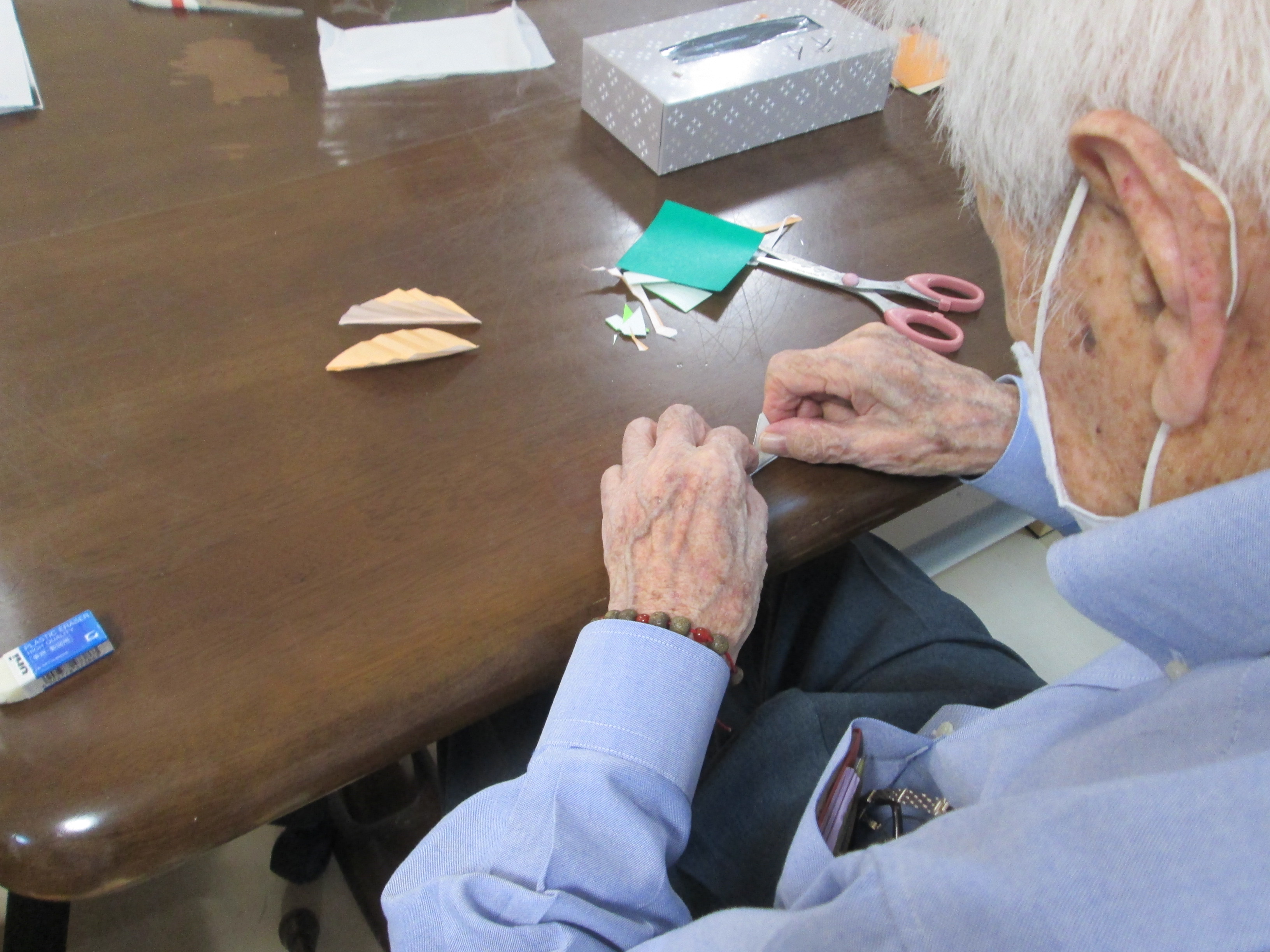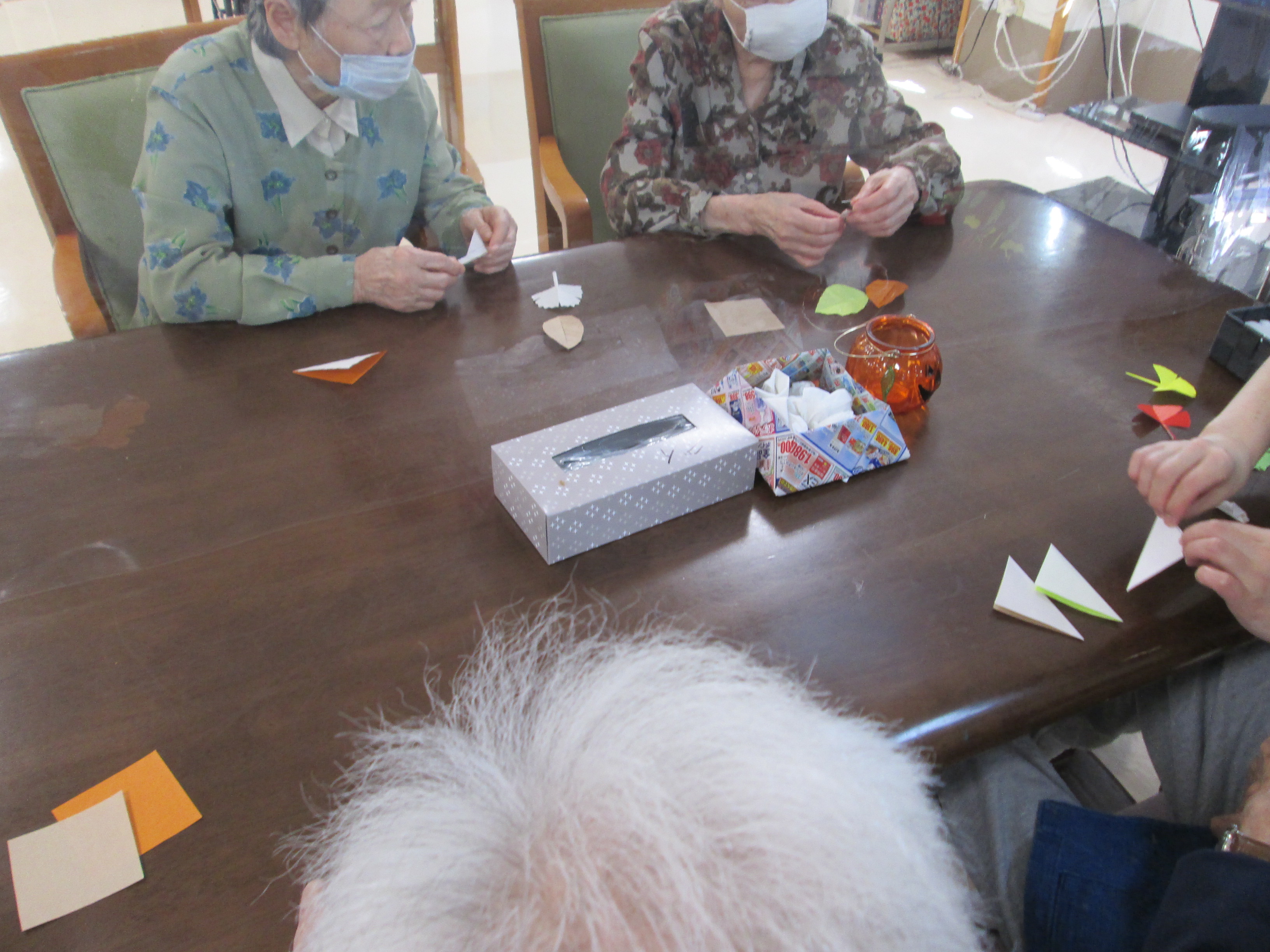 今日は折り紙を使って、落ち葉を折りました。