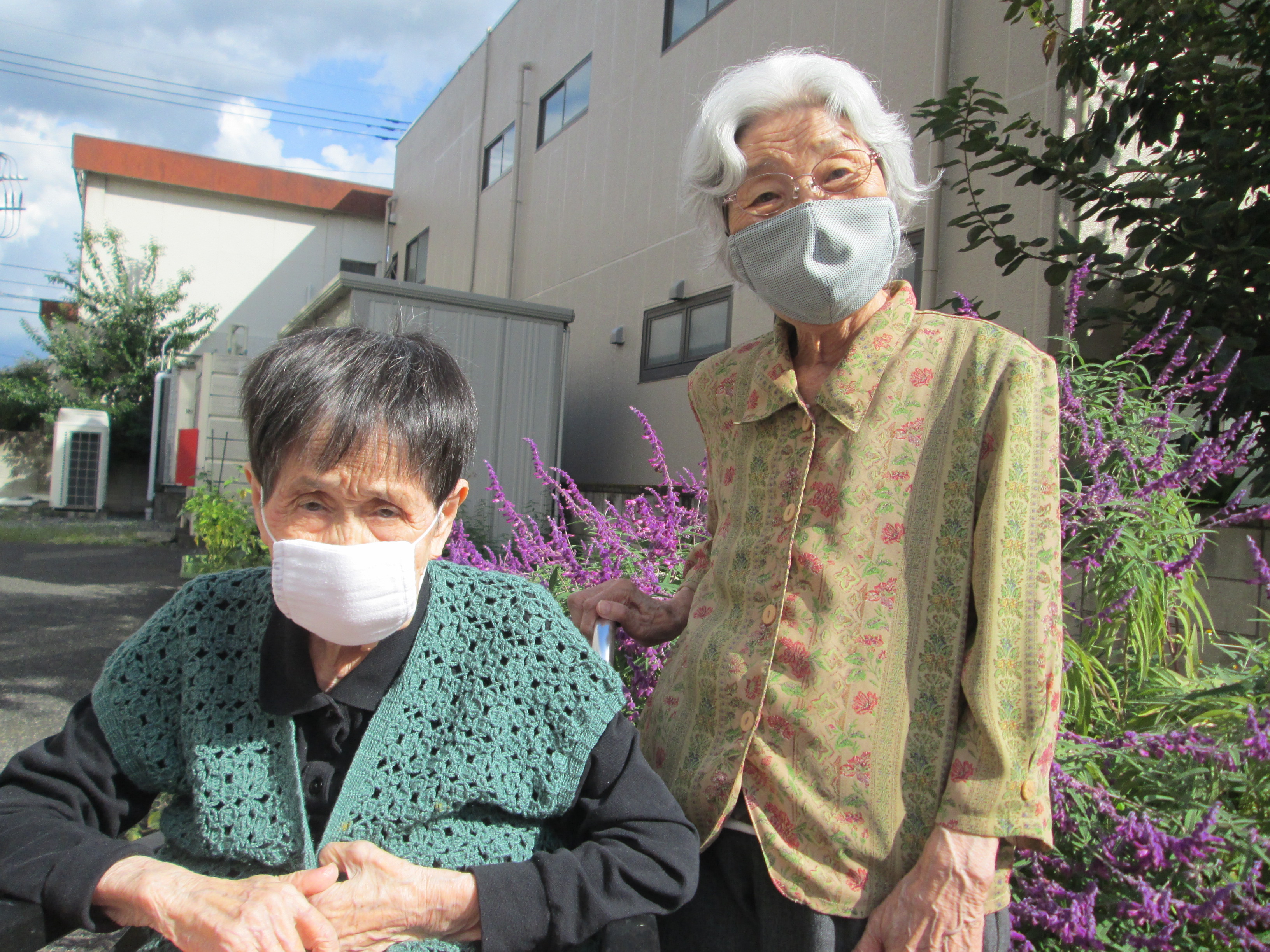 部屋の中にいるのがもったいなくて、利用者様と外に出て散歩をしました。