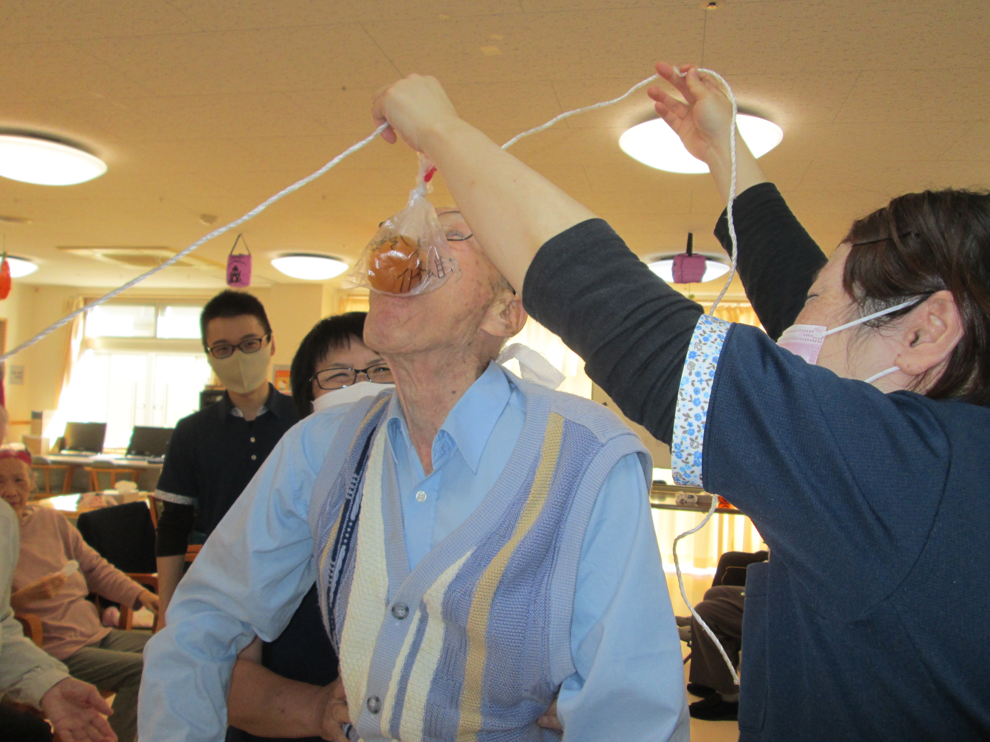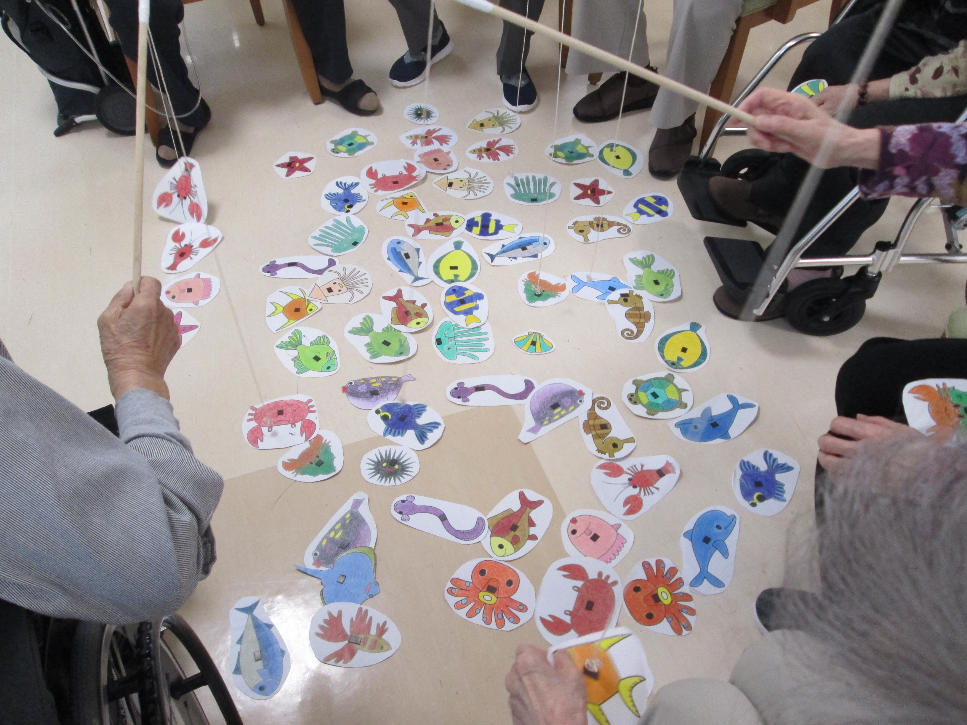 レクリエーションの時間に魚釣りゲームをしました。