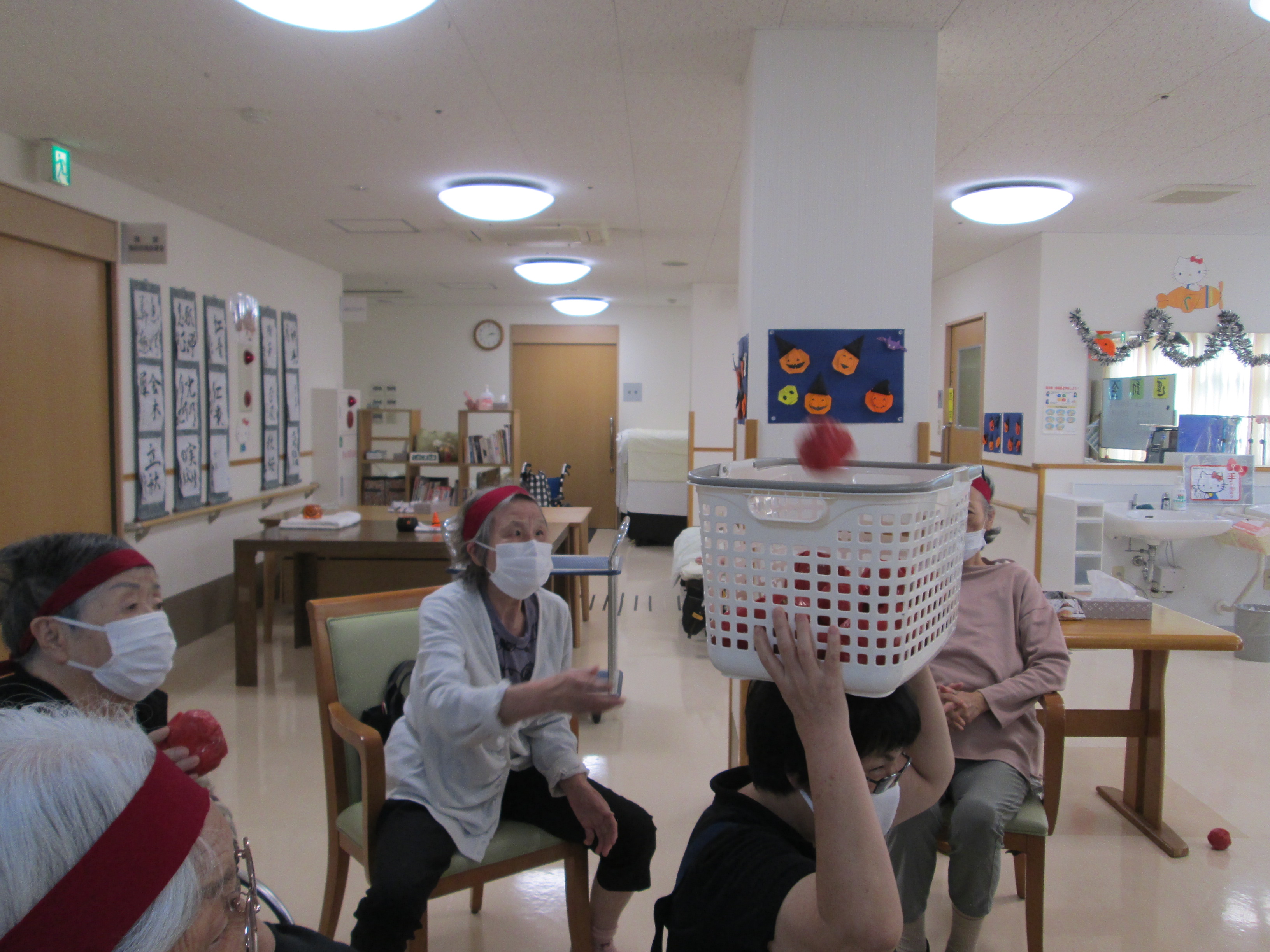 こんにちは、デイサービスです。今日は、敷島デイサービスセンター秋の大運動会を開催しました!種目は、ピンポン玉リレー・玉入れ・パン食い競争の三種目。途中経過では同点という大接戦の中迎えた最終種目のパン喰い競争!パン喰い競争の結果は紅組の勝利でした。…ということで、チーム戦の結果は紅組の勝利となりました!!皆様、大変お疲れ様でした。白組の皆様、来年度は勝利目指して頑張りましょう!紅組の皆様、勝利おめでとうございました☆