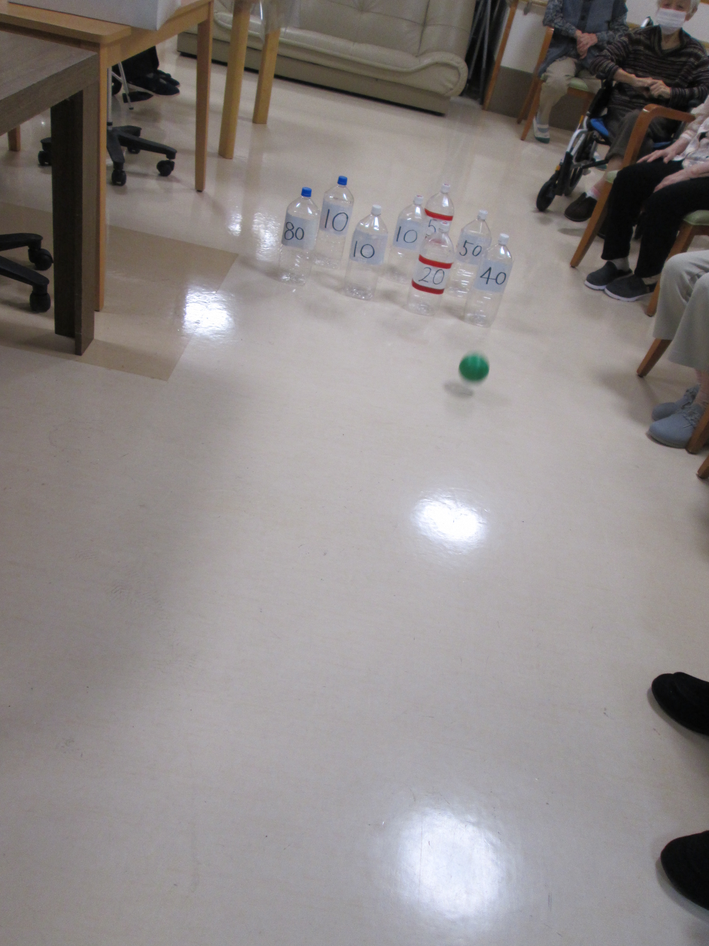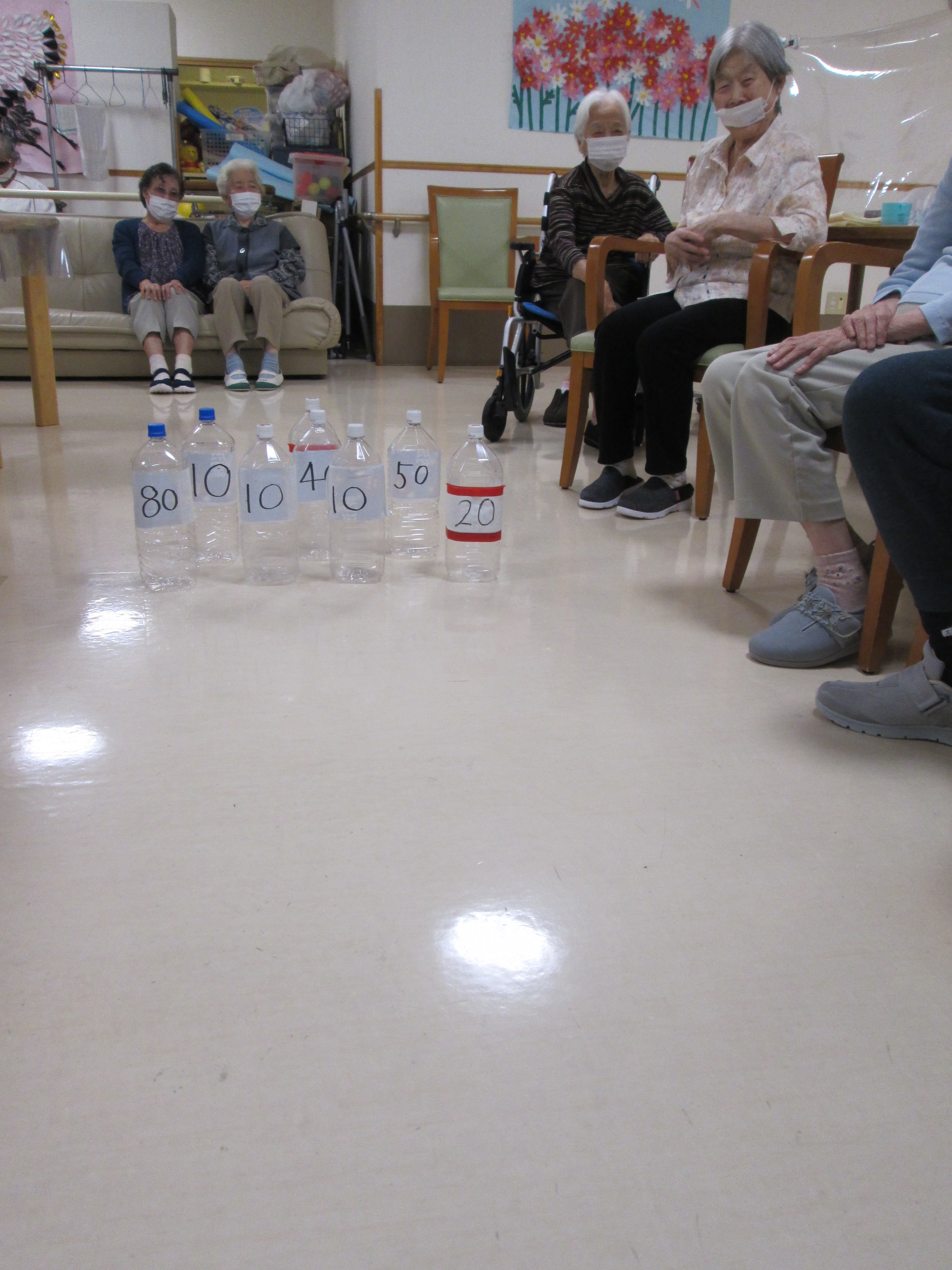 ペットボトルを使ってピンを作り、ボーリングゲームをしました。
