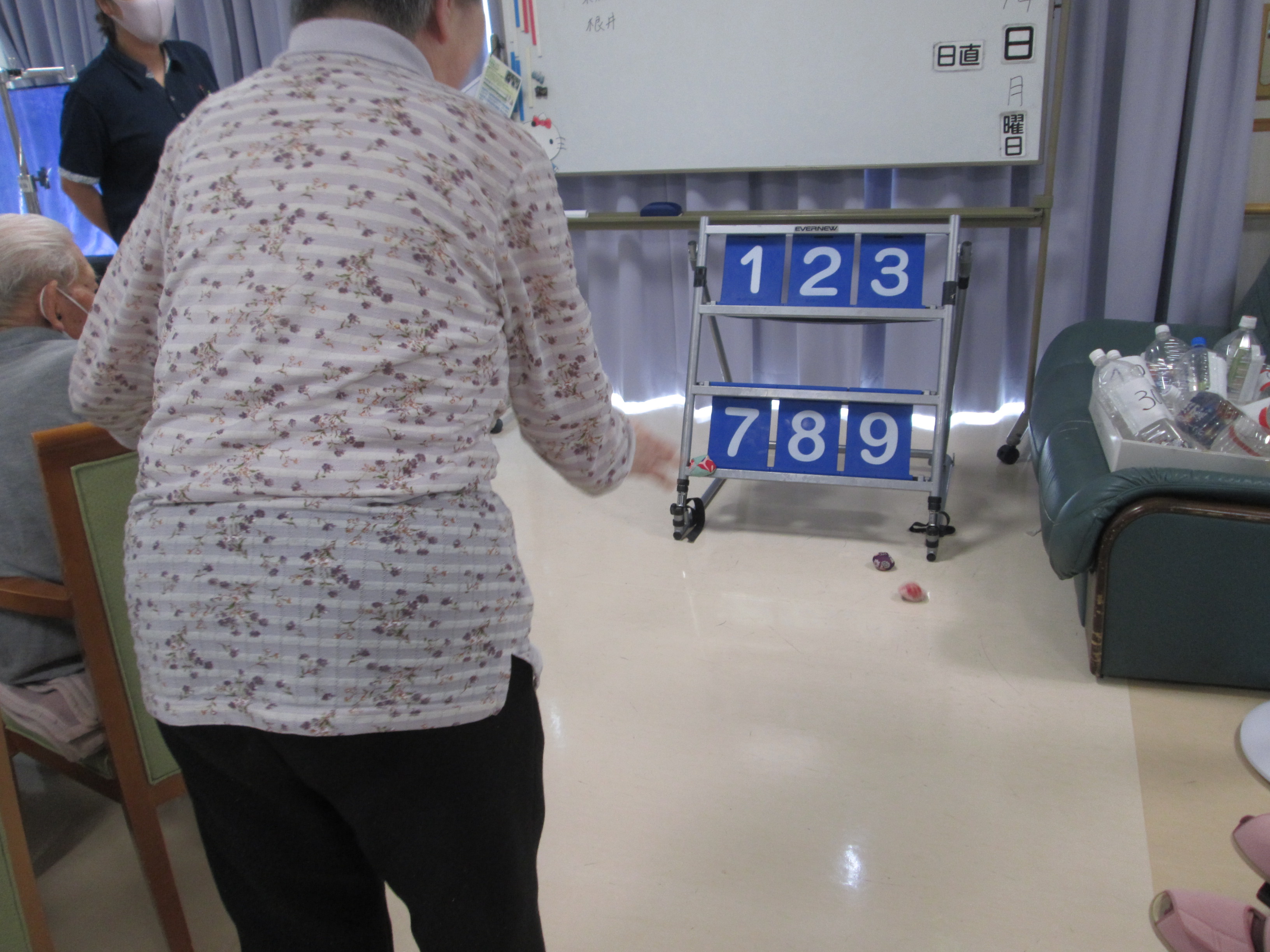 今日のレクリエーションは、リハビリを兼ね、体を使ったゲームをしました。