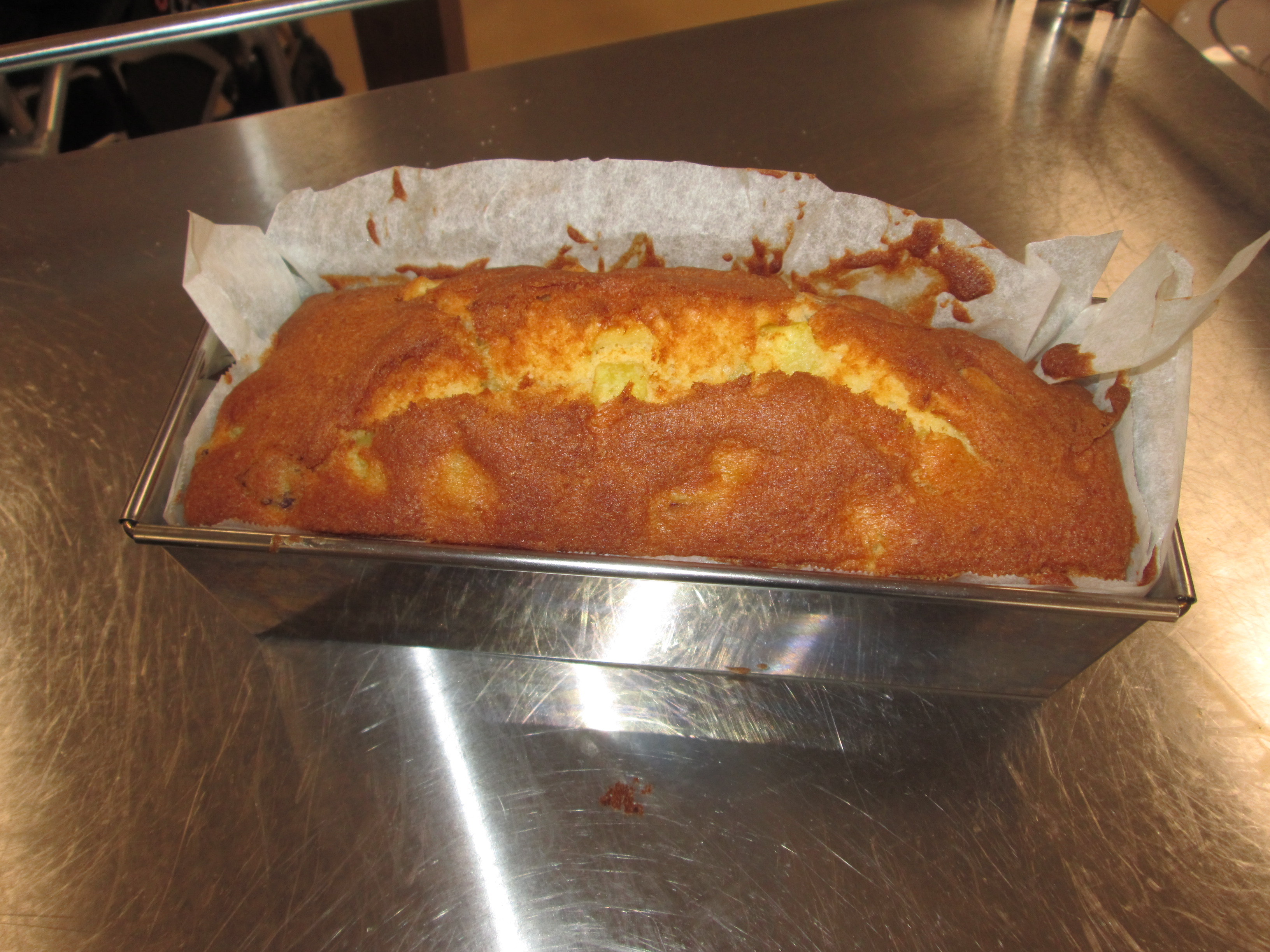 茹でたさつま芋をさいの目にきり、ケーキの種に練り込みました。
