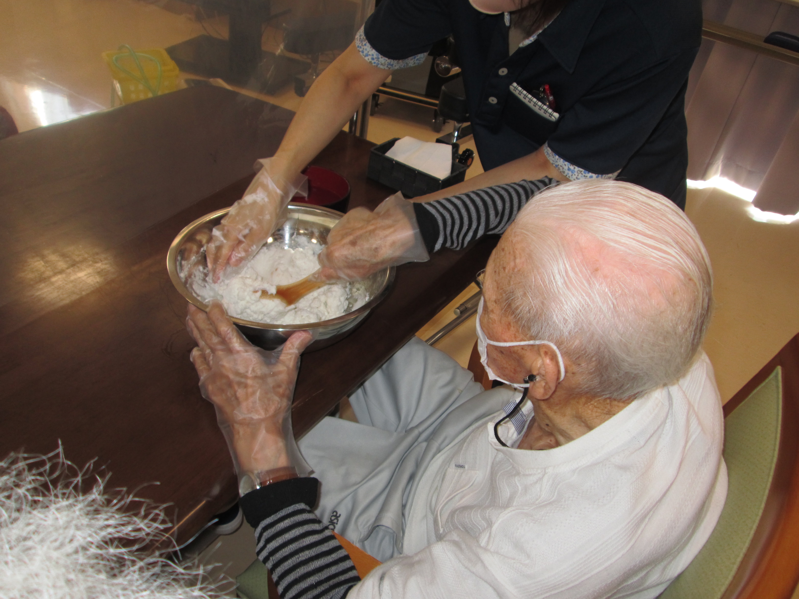 今日は利用者様と一緒に草餅を作りました。