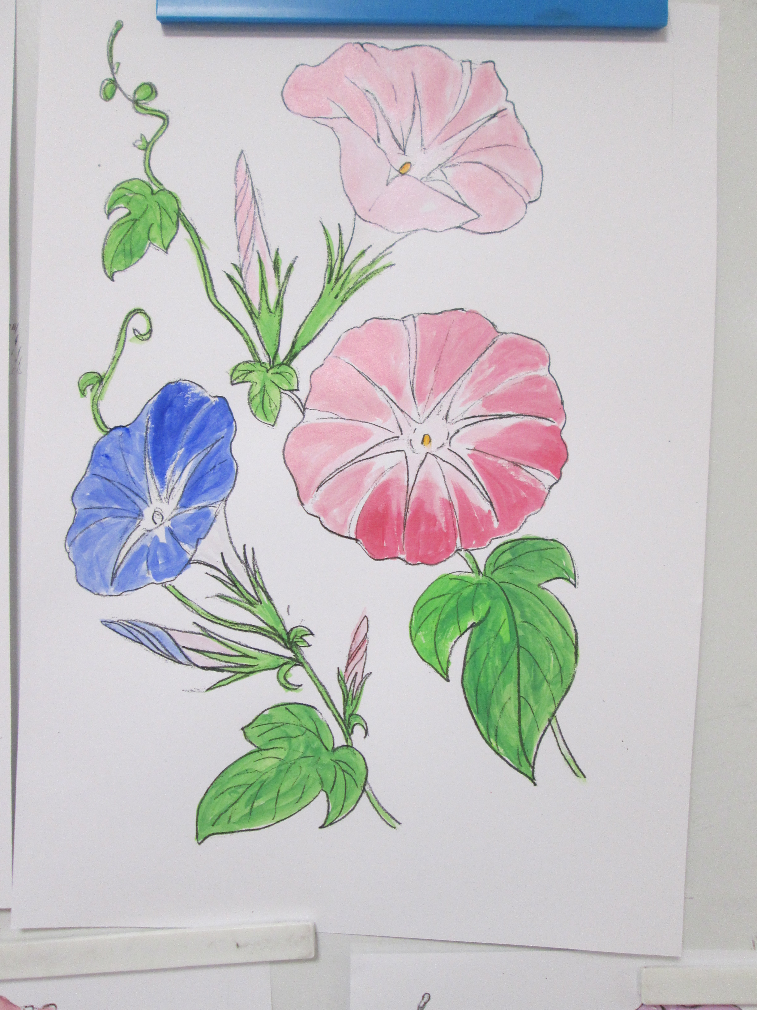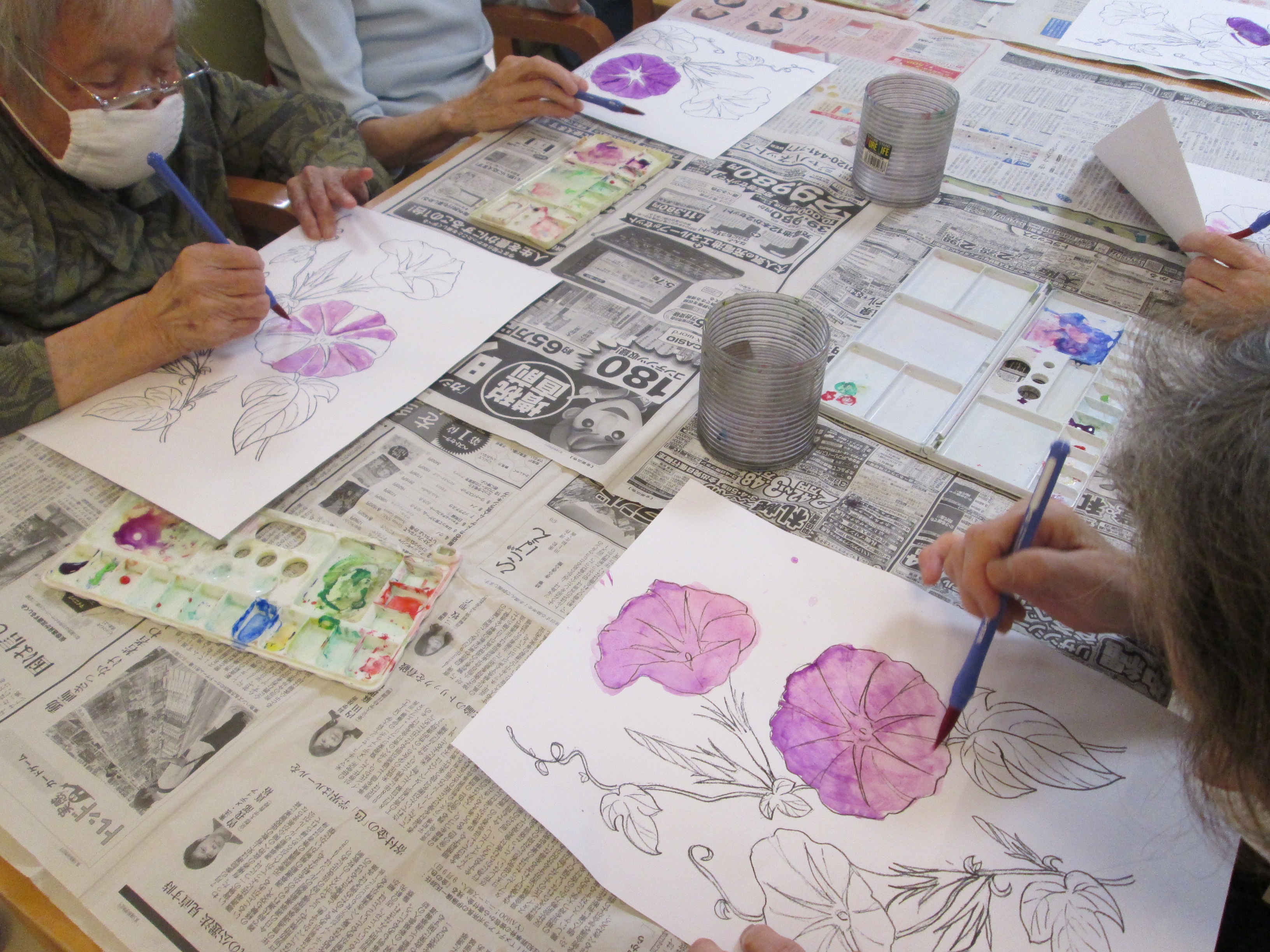 朝顔を題材に、皆さん真剣に色付けに取り組まれていらっしゃいました。