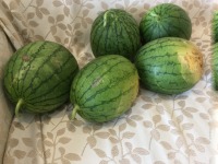 『小玉は今年はじめて作ってみたんだよ』とのこと。毎年大きなスイカはいただいていました。