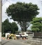 コロナウイルスの影響で周囲には立ち入り禁止のロープが張られていましたが、今朝は公園の周囲に植栽されていた木々の撤去作業が行われています。