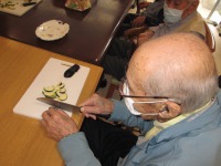 先週はその長~いナスとピーマンの味噌炒めを利用者様に調理していただきました。