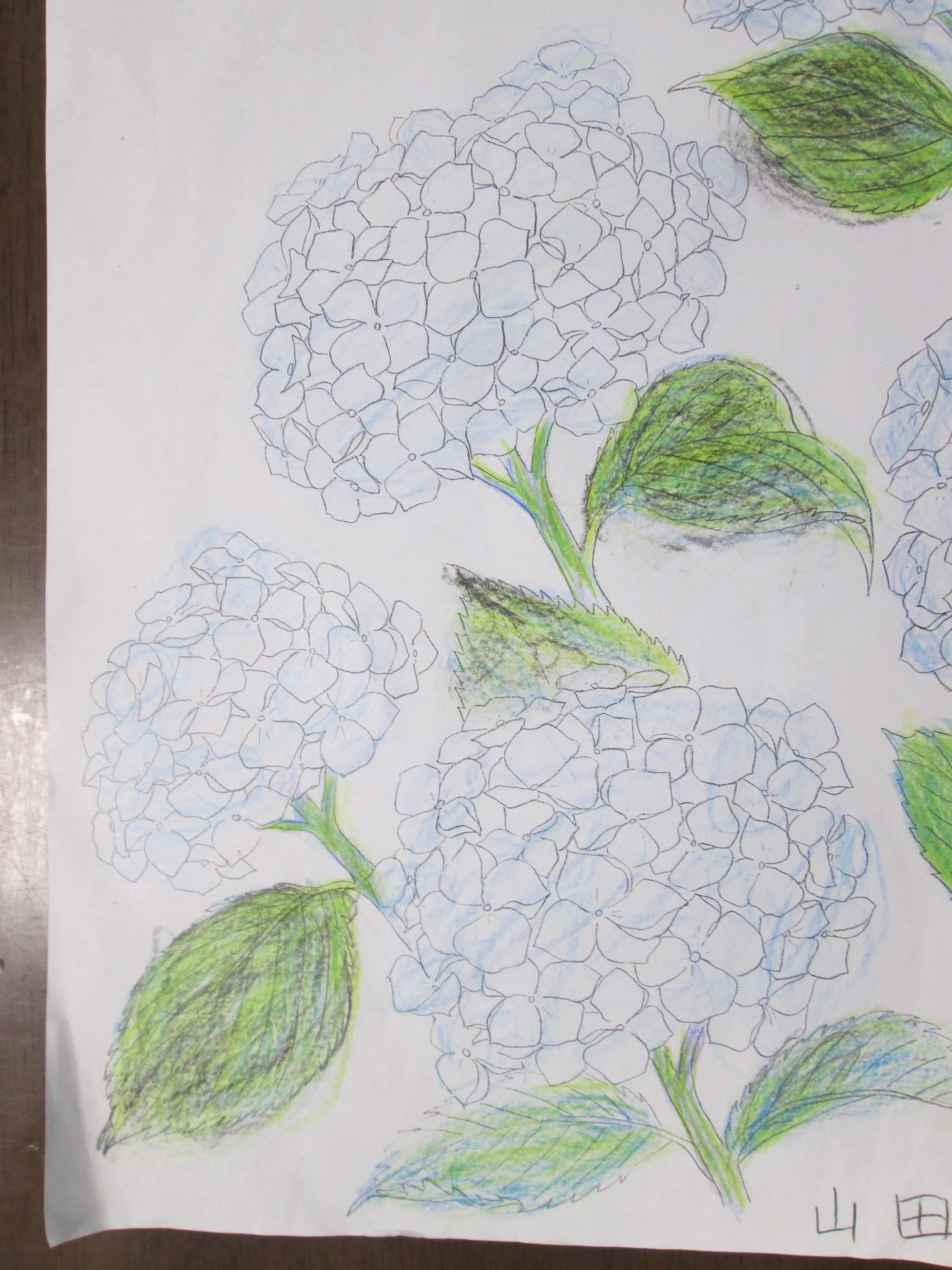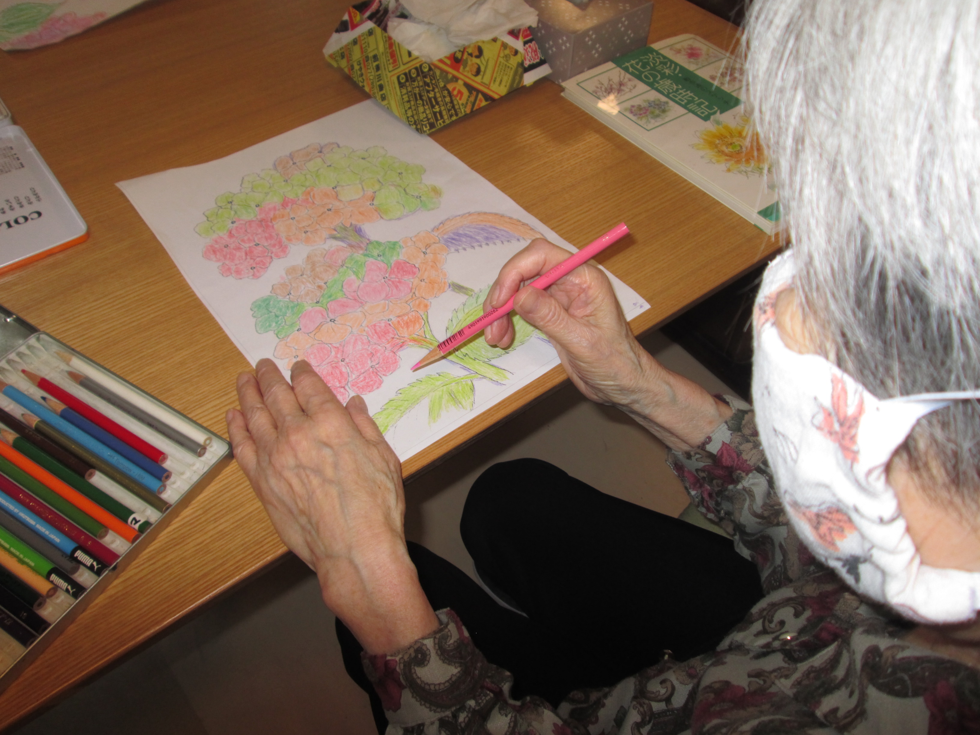 早速、帰って来て紫陽花の塗り絵をしました。