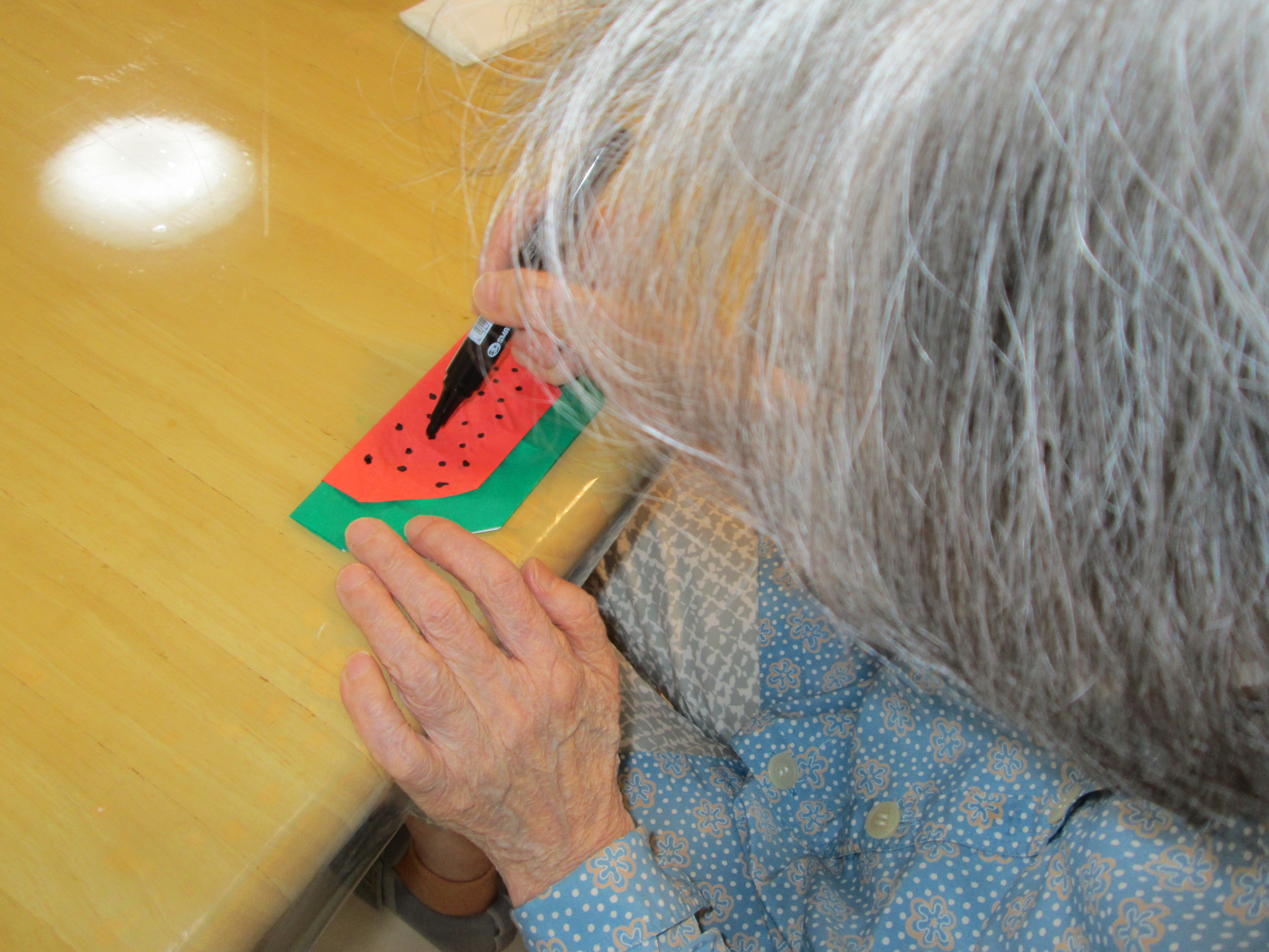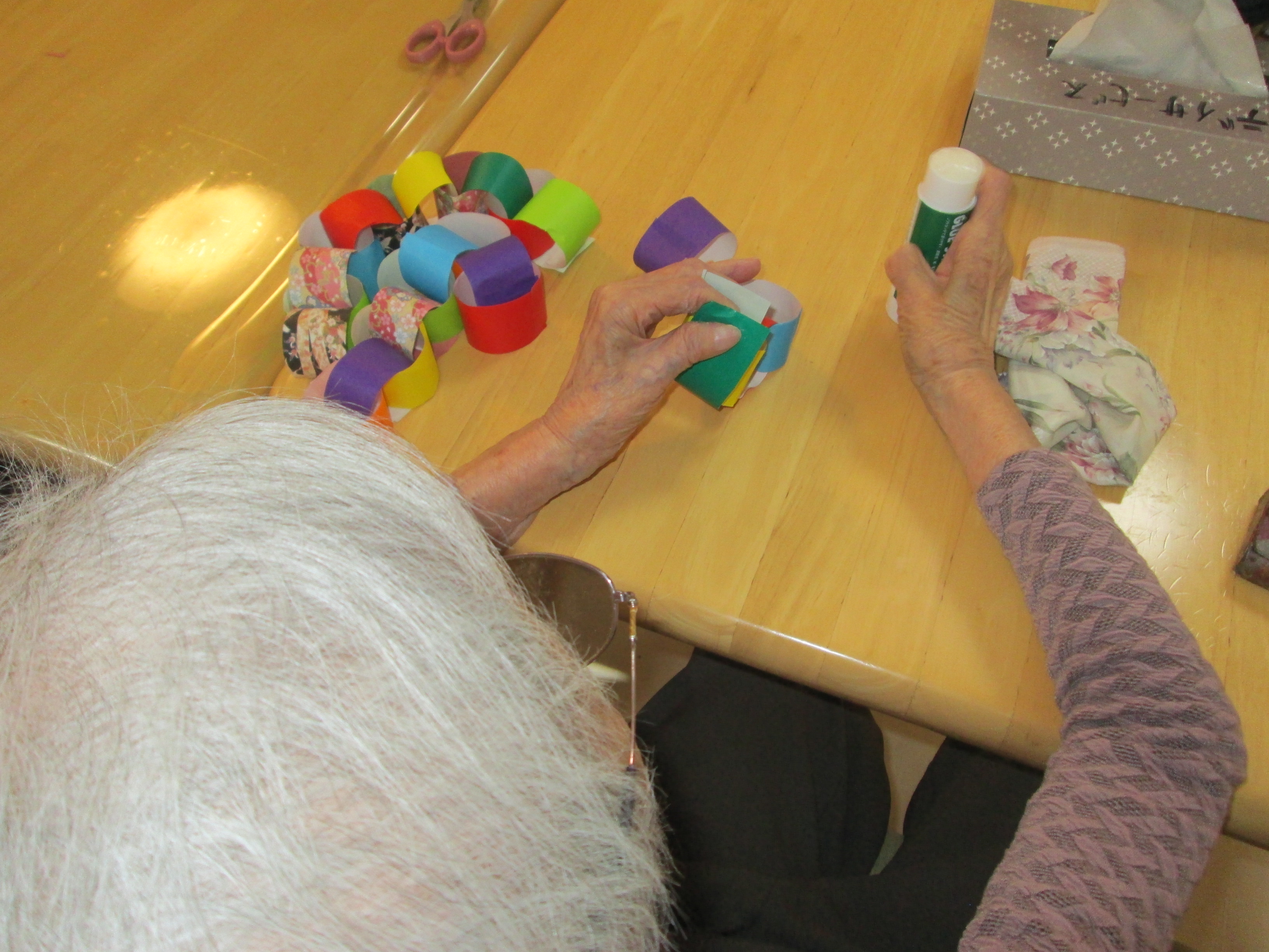 デイサービスでは、七夕に向けての飾り作りに一生懸命です。