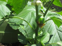 そして、お隣りのデイサービスのプランターから、ミニトマトとピーマンの赤ちゃんを発見しました👀