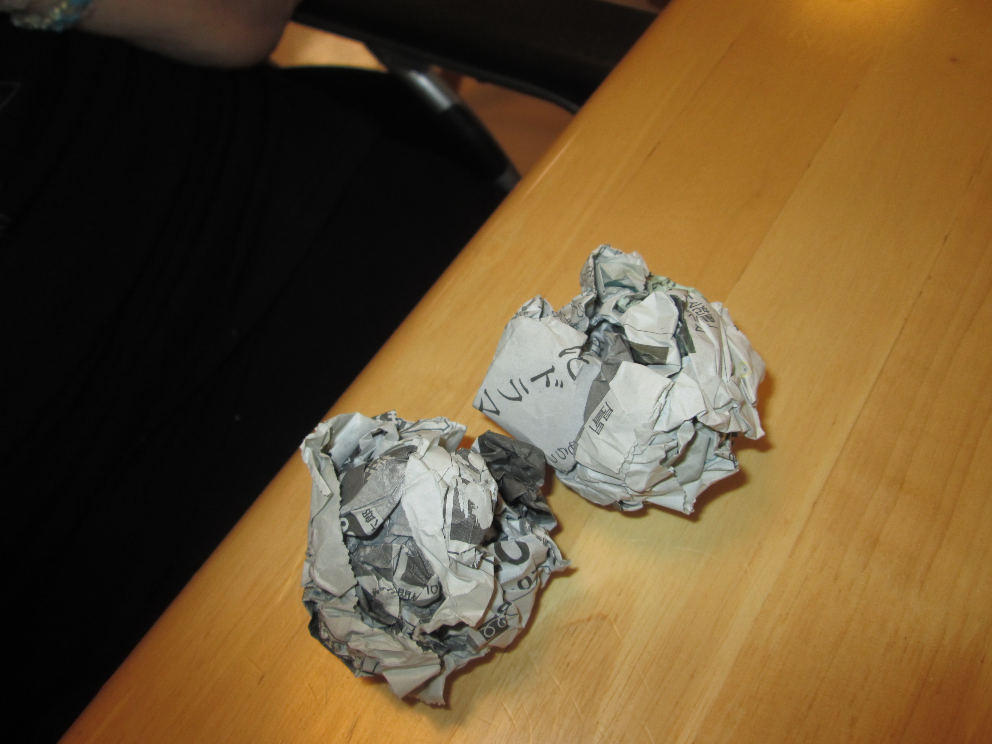 新聞紙を丸めたり、紙を折ったり広げたり、手指のリハビリになりました。