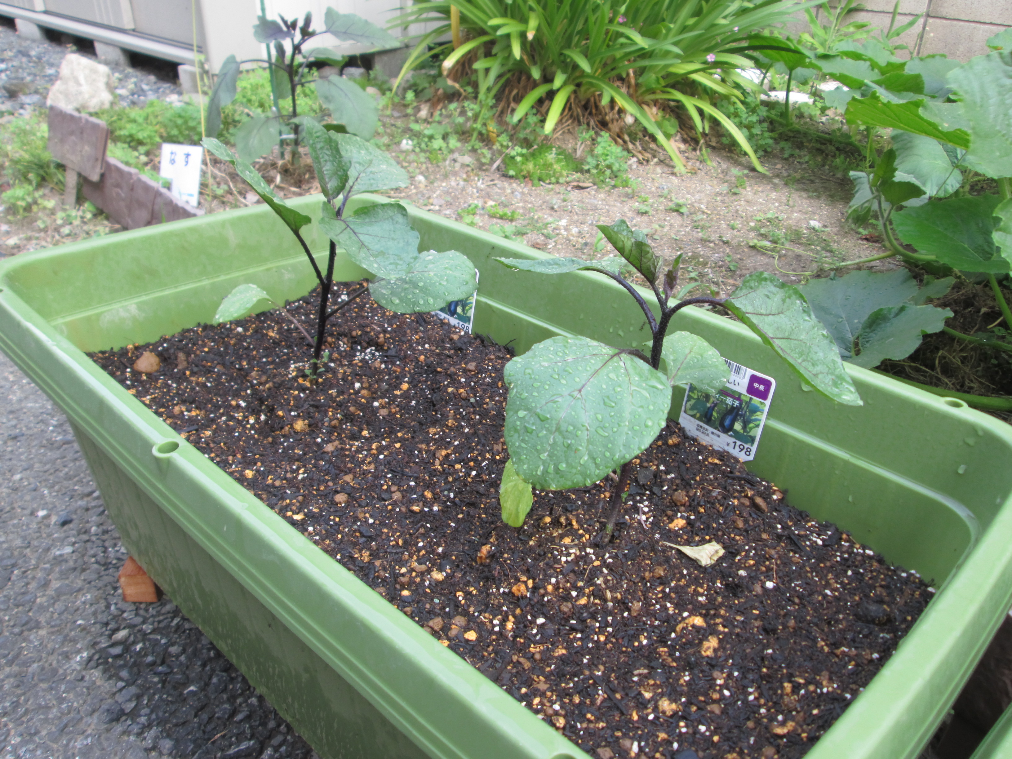 先日植えた夏野菜の苗が元気に育っています。