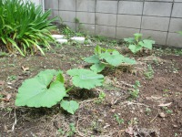畑に植えたジャンボカボチャが、連日の雨の恵みを受けてさらに大きく成長中です。