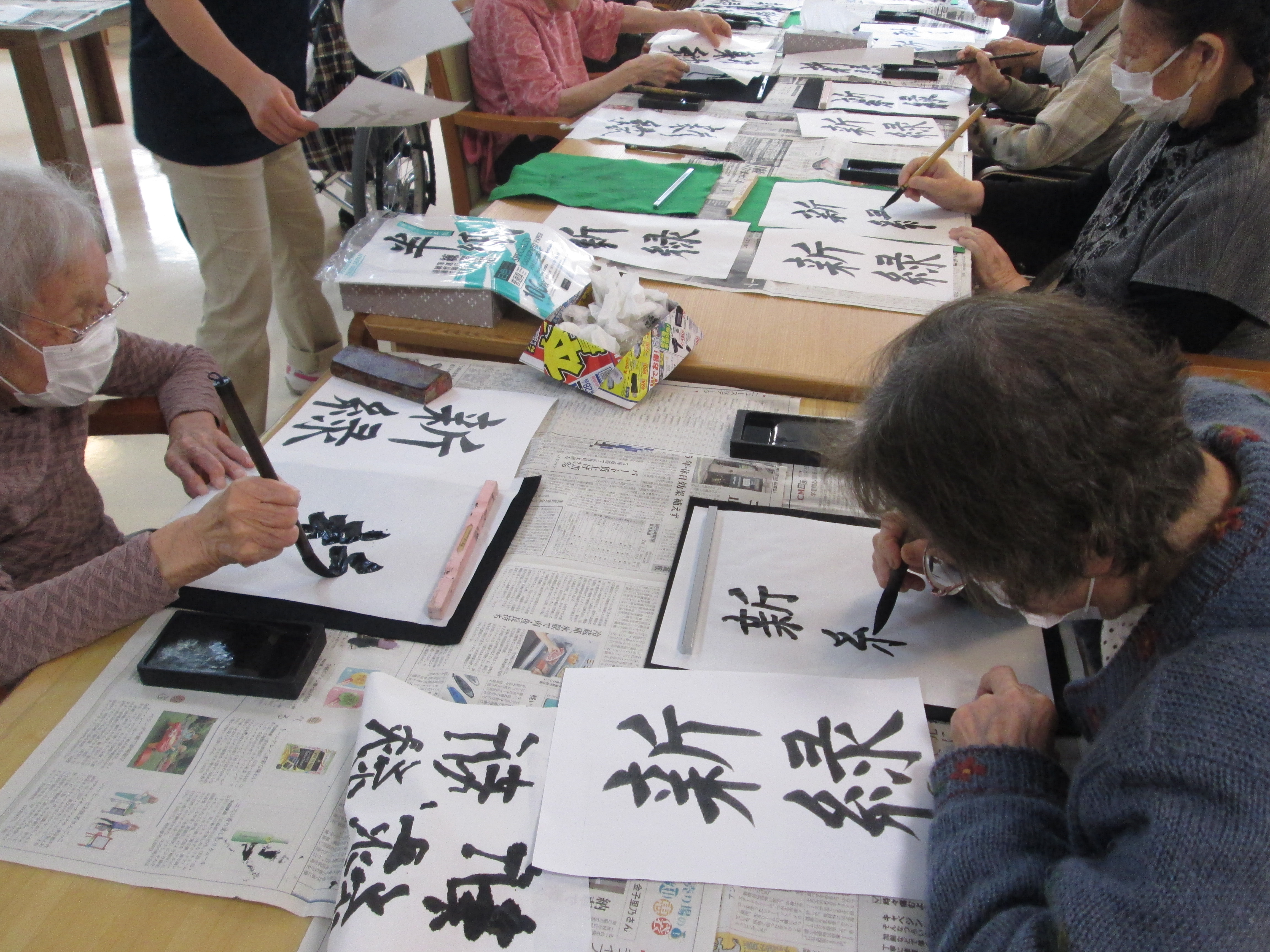 皆さん懐かしがって筆を持ち、書道に取り組みました。